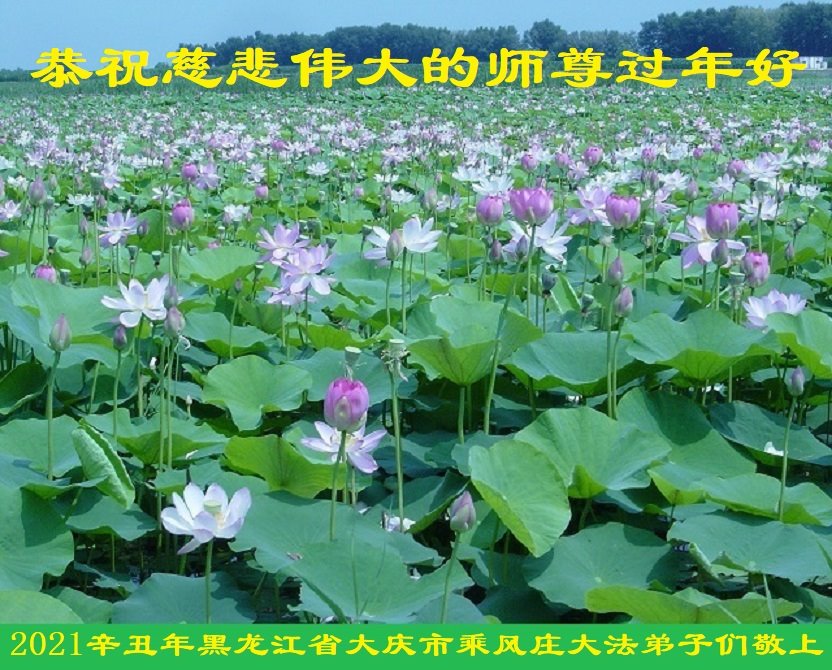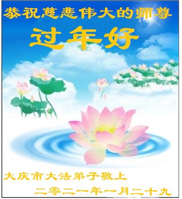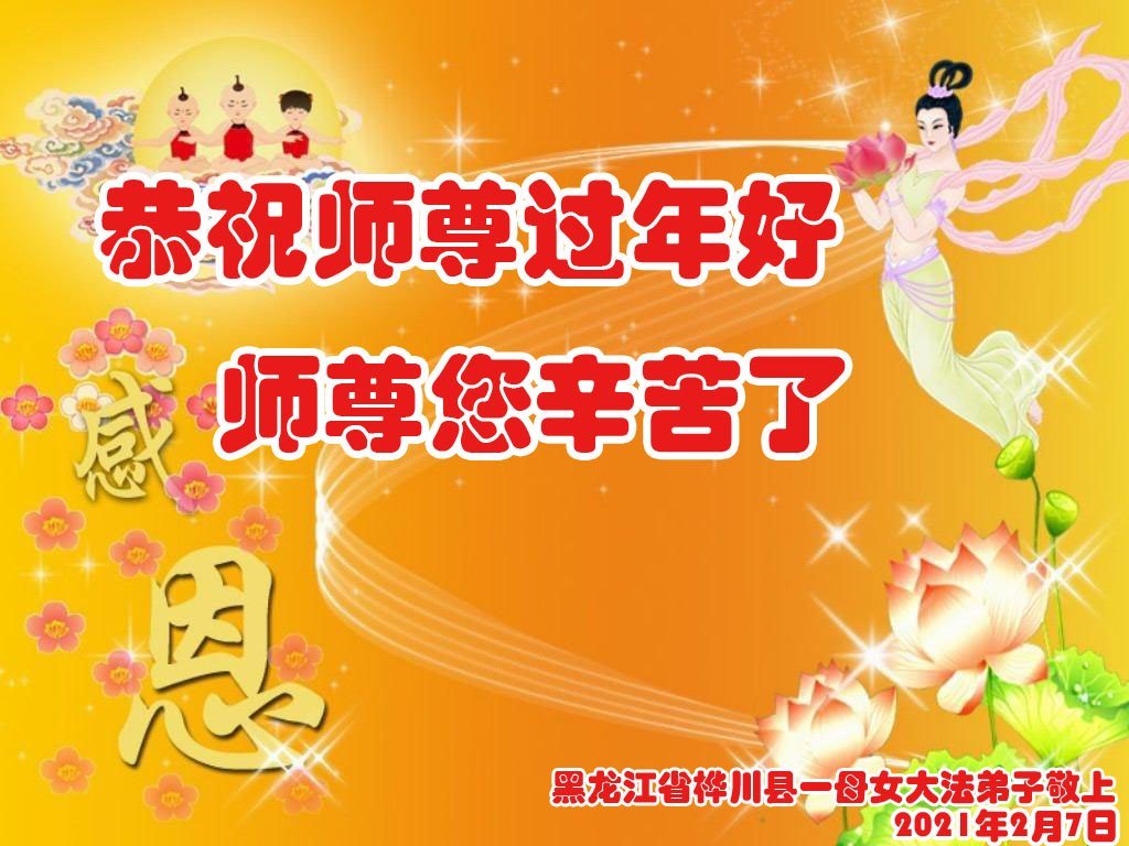 ──黑龙江大庆市百岁大法弟子恭祝伟大师尊过年好!