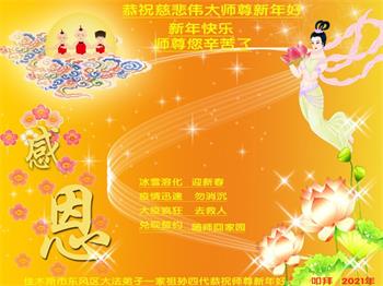 ──大陆大法弟子和百岁的大法弟子敬祝慈悲伟大的师父新年快乐!