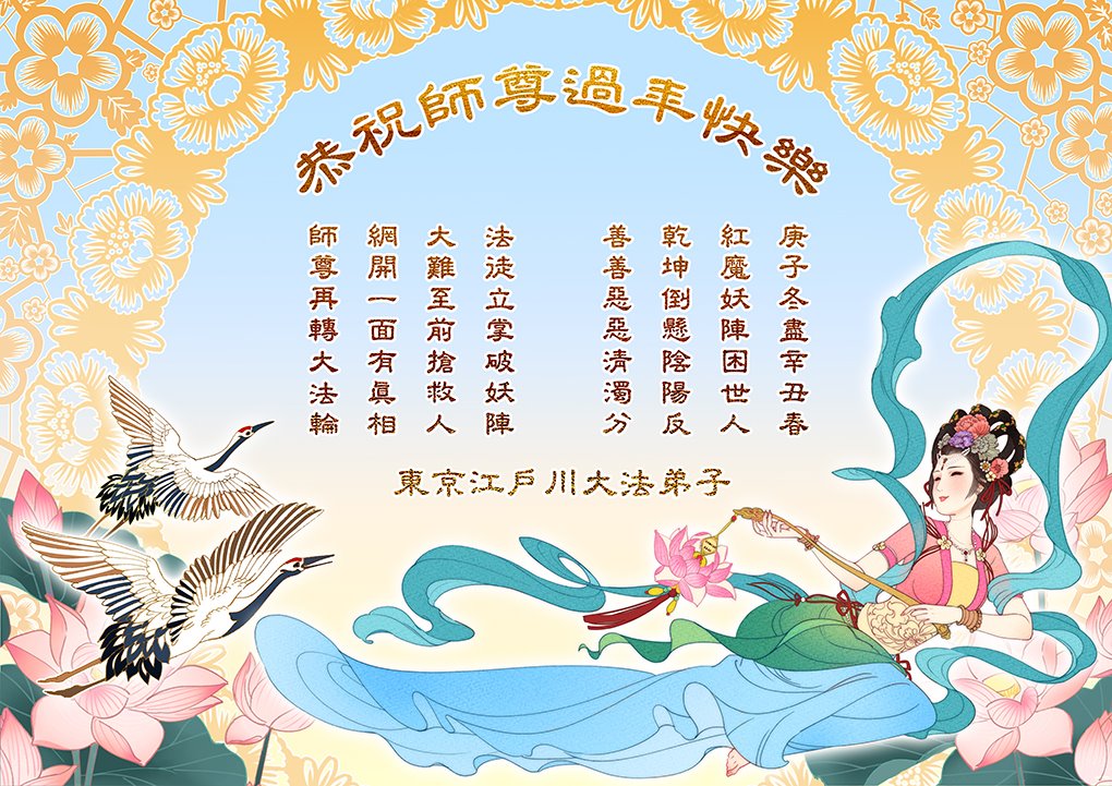 师尊您辛苦了!感恩师尊慈悲救度!在新的一年里,弟子会继续学好法,修好自己,不忘使命,同心协力,互相配合好,克服困难,坚持不懈讲真相,救下更多的众生。