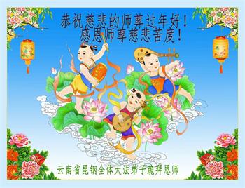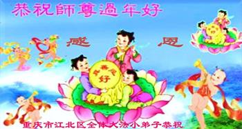 江苏无锡市一学法小组大法弟子跪拜师父!我们学法小组大法弟子的子女相信大法,相信师父,恭祝李大师新春佳节快乐!盼李大师早日回到家乡!