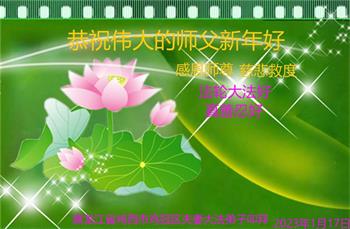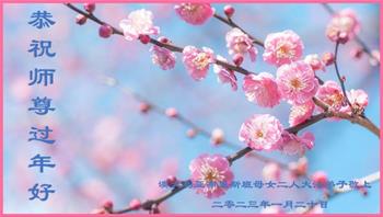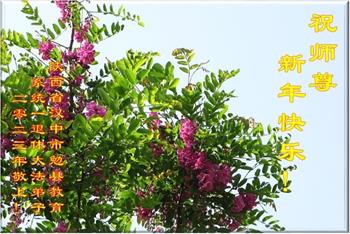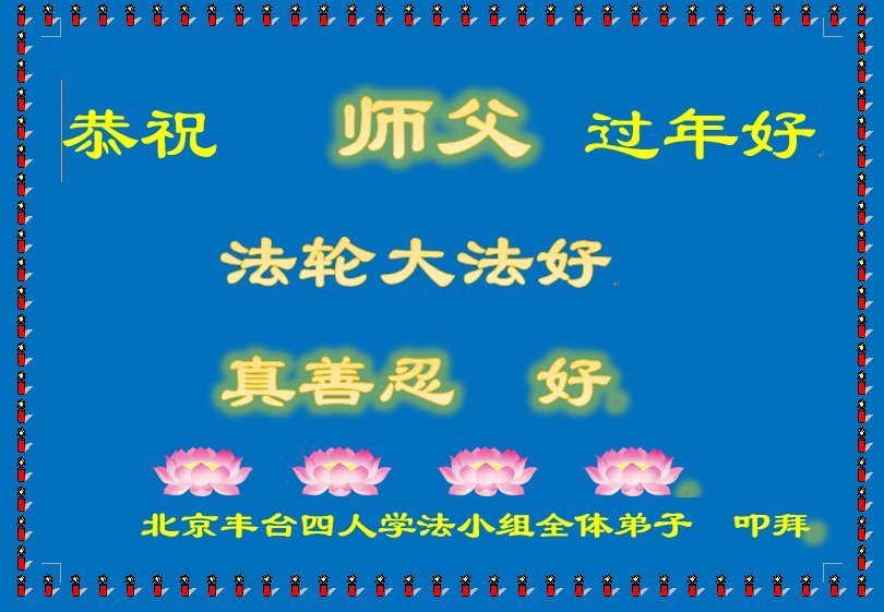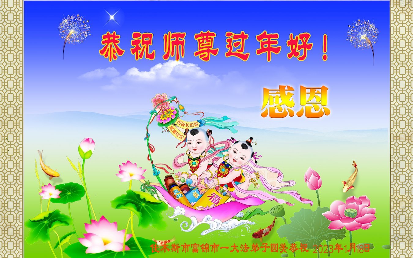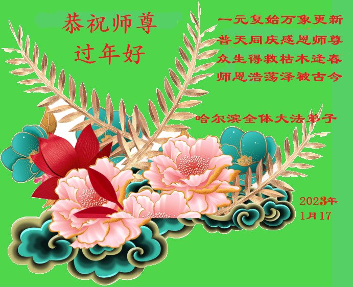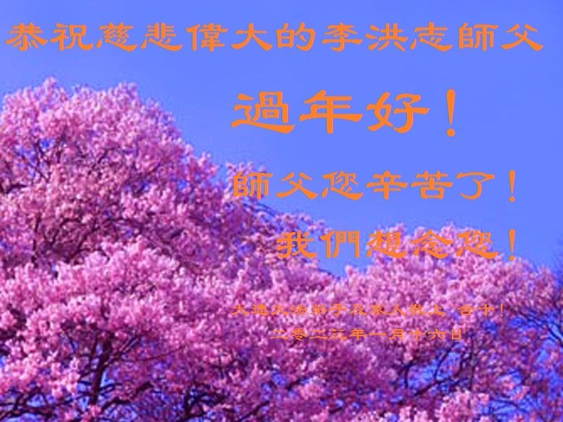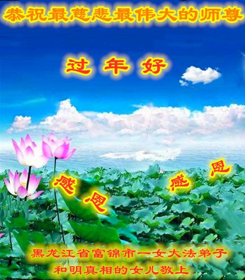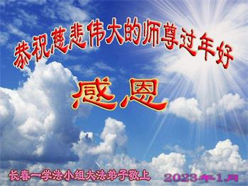 大法开启了我们的智慧,大法的法力让我们变的清醒和理智。使命让我们不再迷茫,我们会抓紧每个机缘去兑现我们的使命。新年来临,弟子们遥祝师尊过年好!
