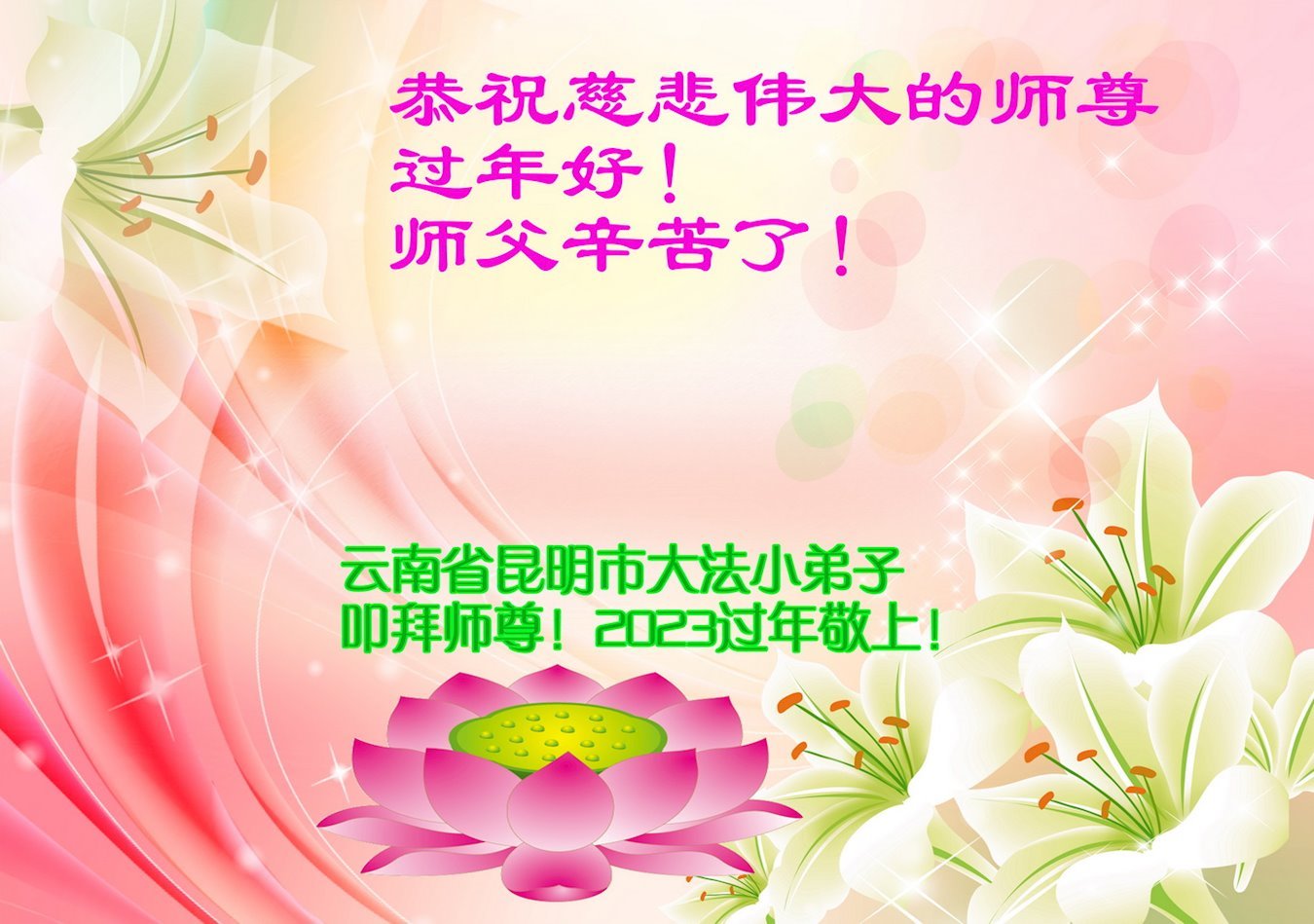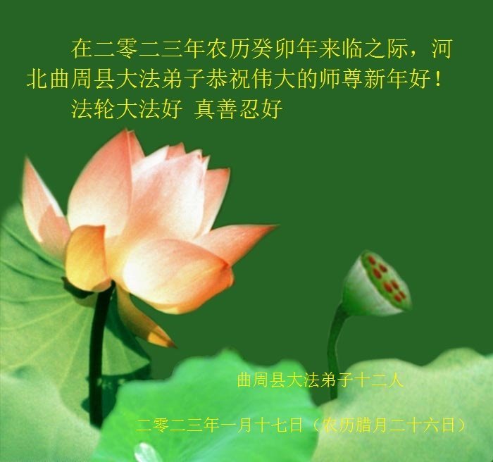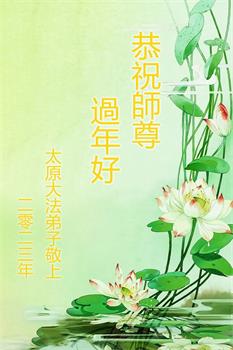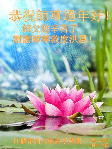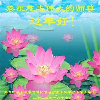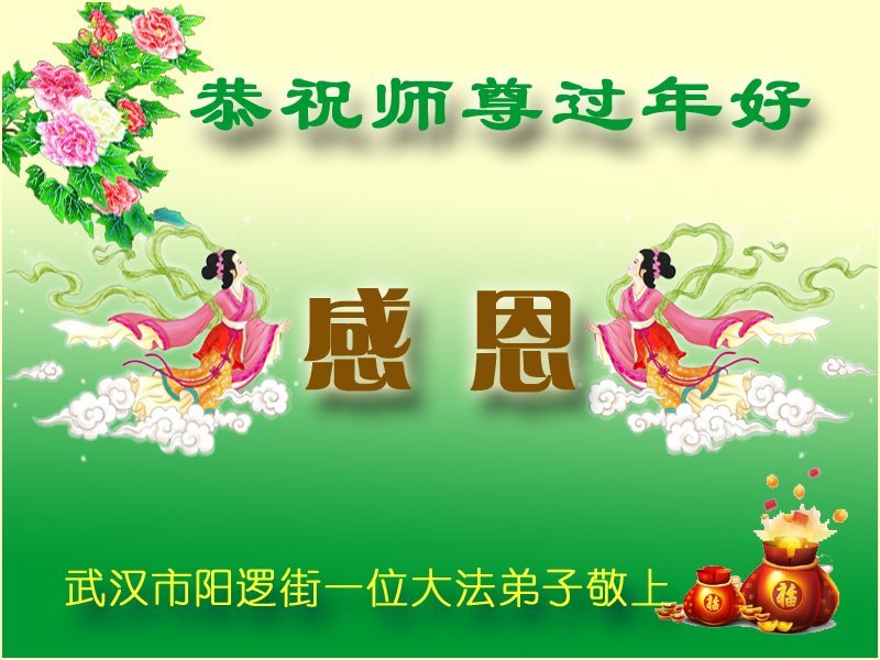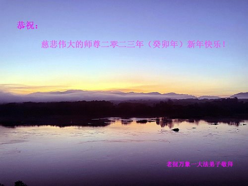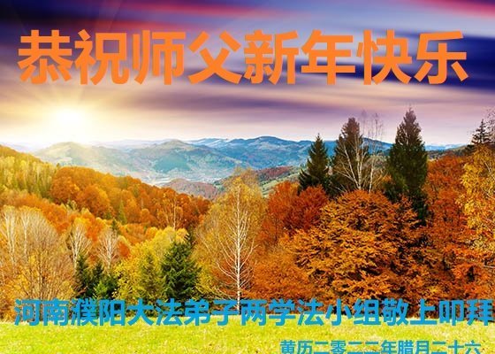 大法开启了我们的智慧,大法的法力让我们变的清醒和理智。使命让我们不再迷茫,我们会抓紧每个机缘去兑现我们的使命。新年来临,弟子们遥祝师尊过年好!
