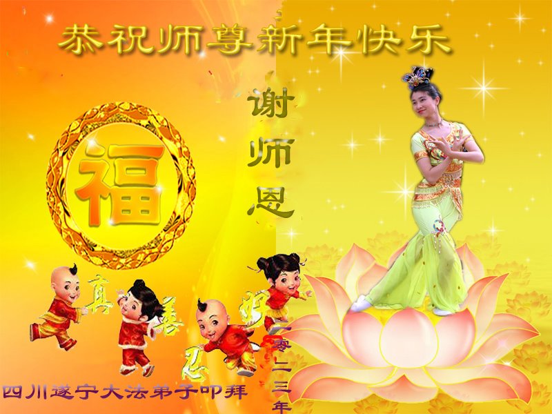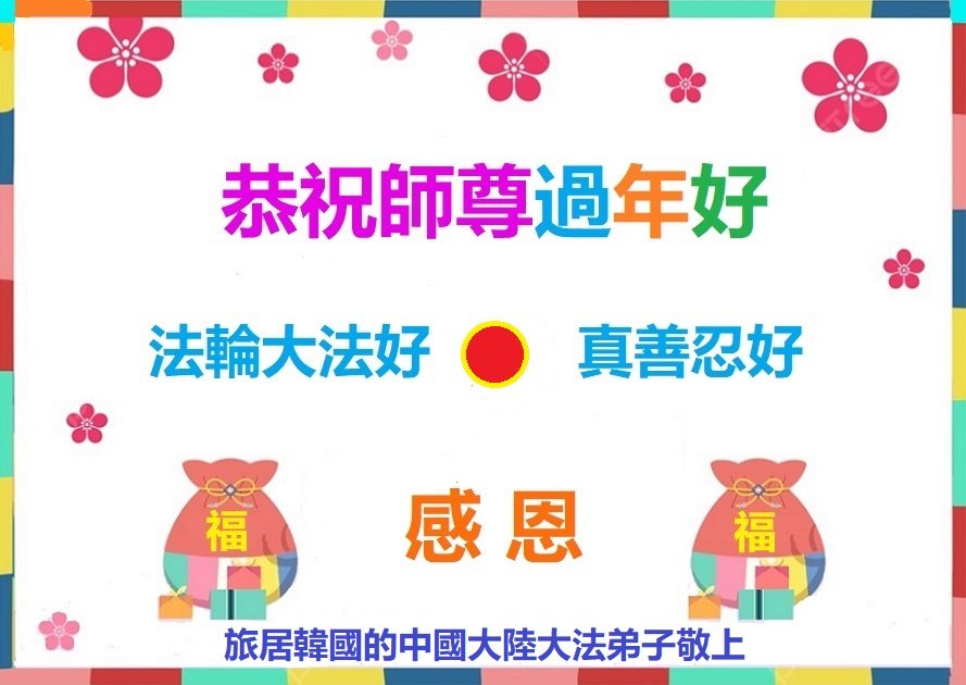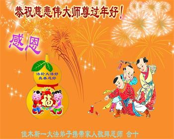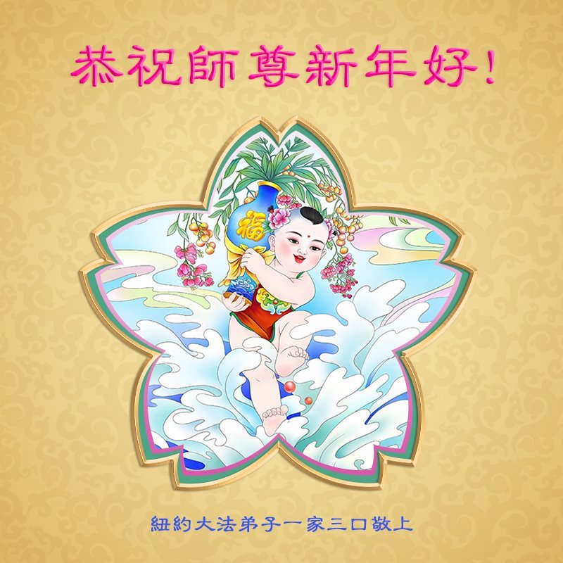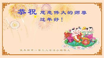 恭祝师父过年快乐!我们一家三口感恩您的佛光普照、普度众生,我们受益于大法!谢谢师父慈悲救度!