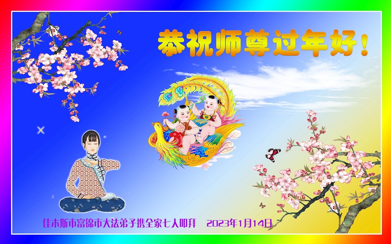 在这纷纷乱世中,我们大法弟子家人都明白真相,深知就大法师父能救我们,所以诚恳接受大法弟子的忠告:危难面前诚心敬念“法轮大法好,真善忍好”!我们都是大法受益者,在这新年到来之际!我们恭祝慈悲的法轮大法师父过年快乐!