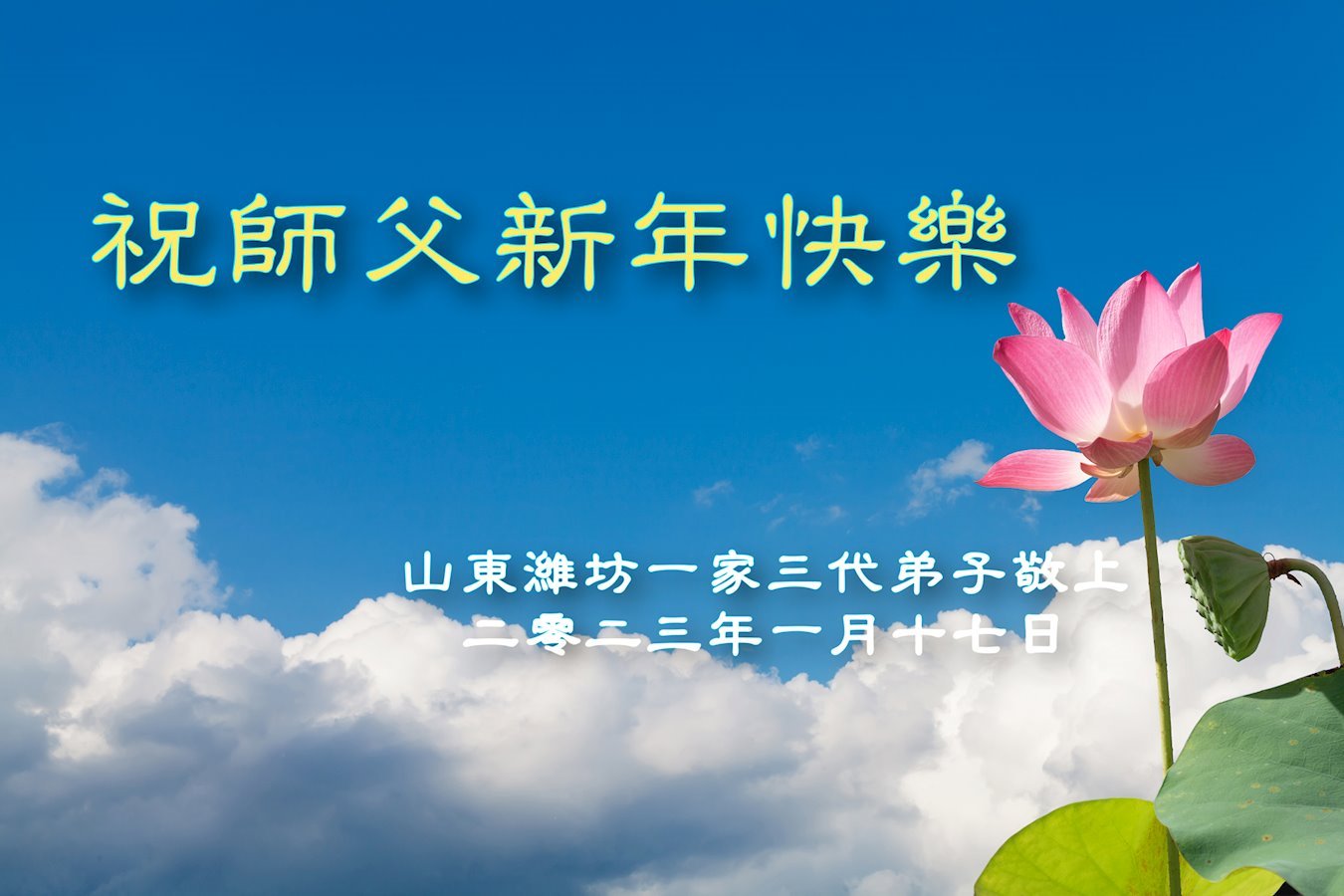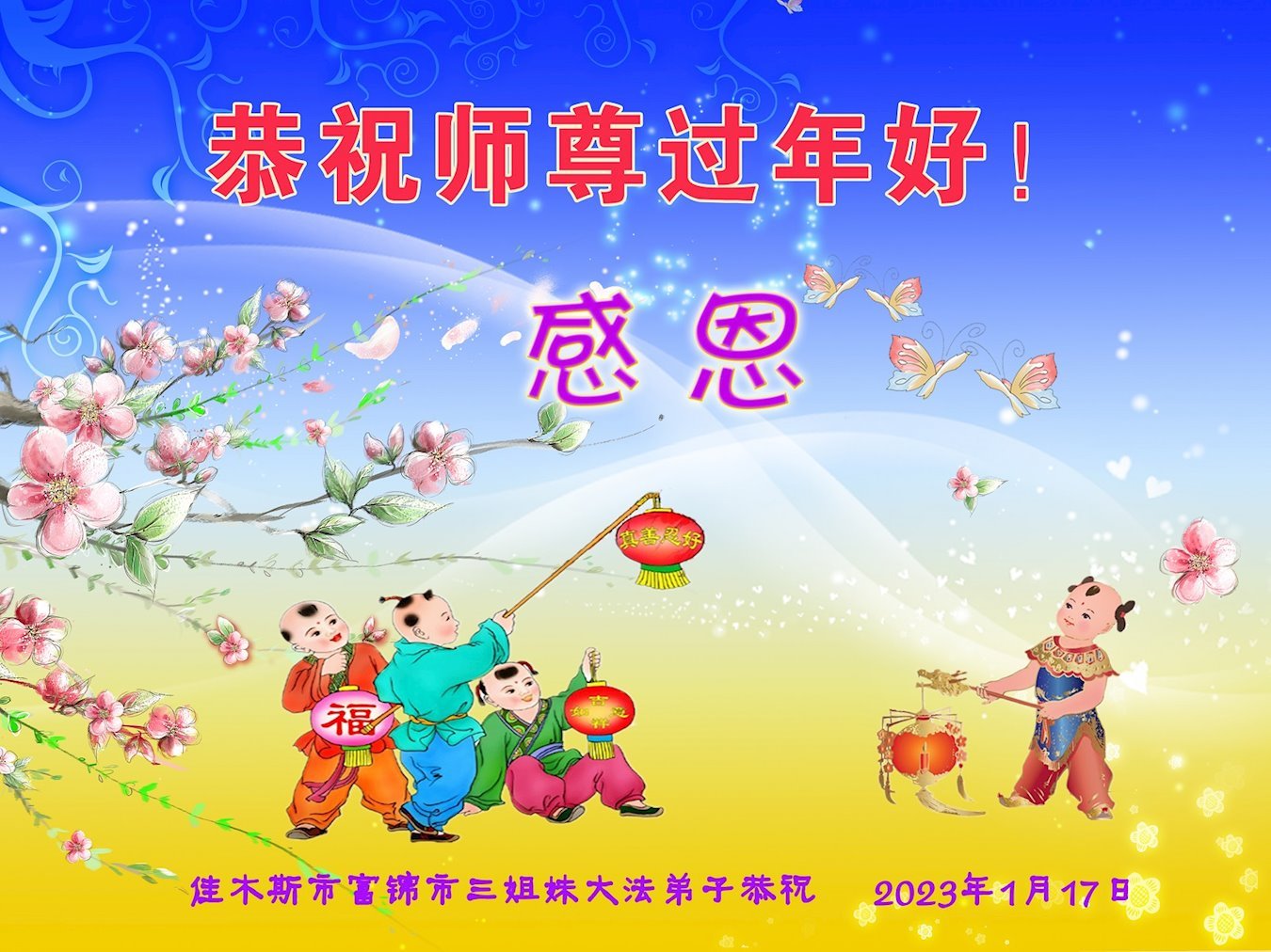 在二零二三年新年即将到来之际,弟子携家人向慈悲伟大的师尊拜年!恭祝师尊新年快乐!师尊过年好!师尊辛苦了!