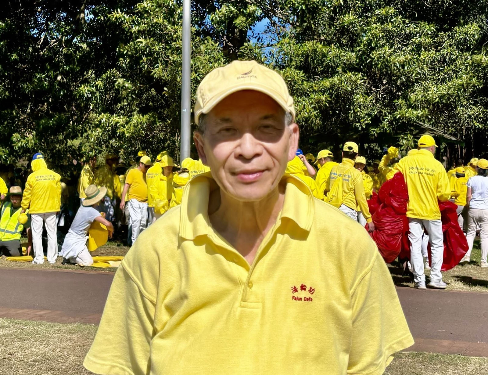 “今天我参与这次大型排图及炼功活动,排出的法轮,壮观殊胜,令我感动。”他说,“我真心希望更多人能够了解法轮大法,如同我一样在大法中受益。”