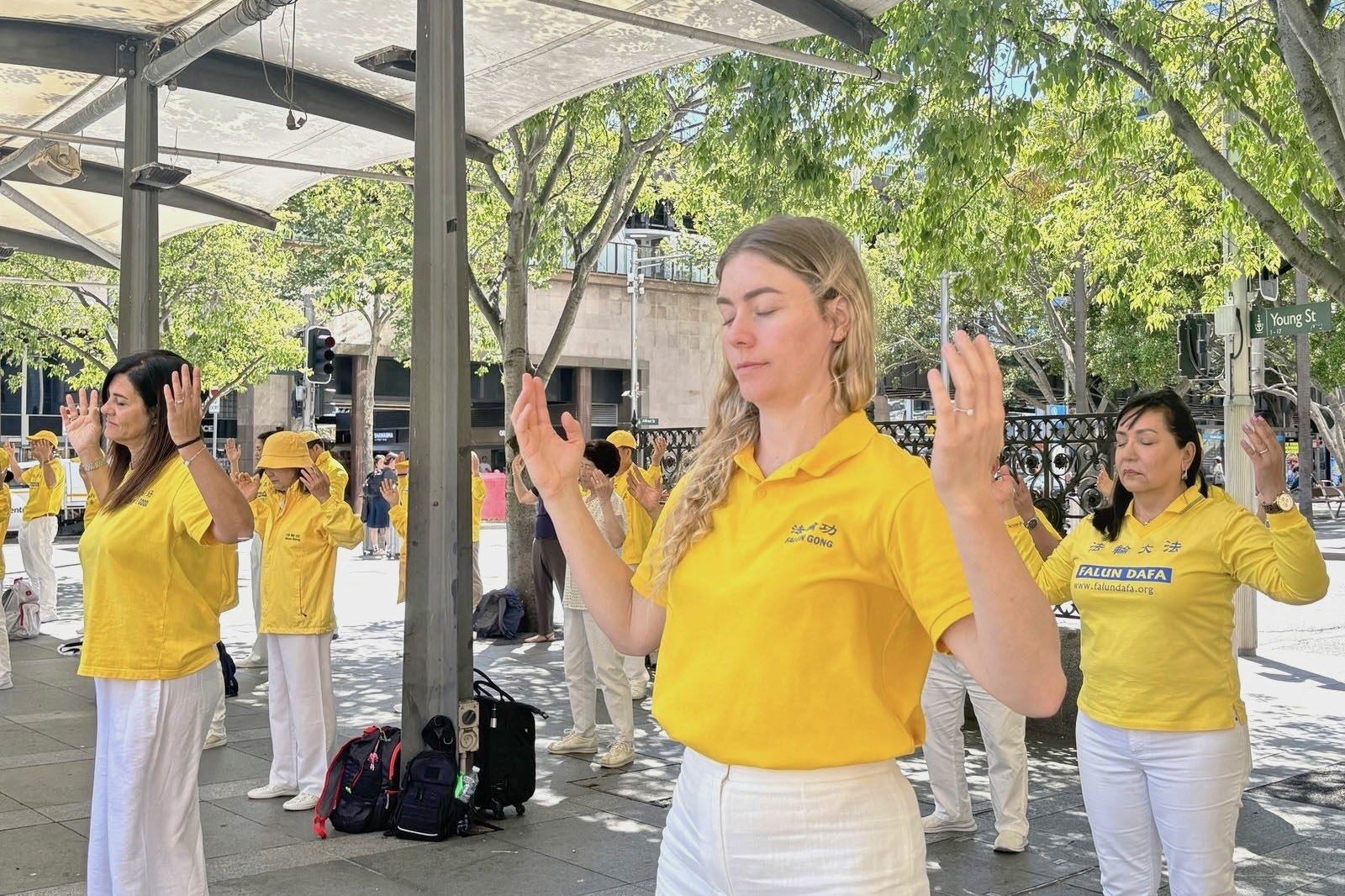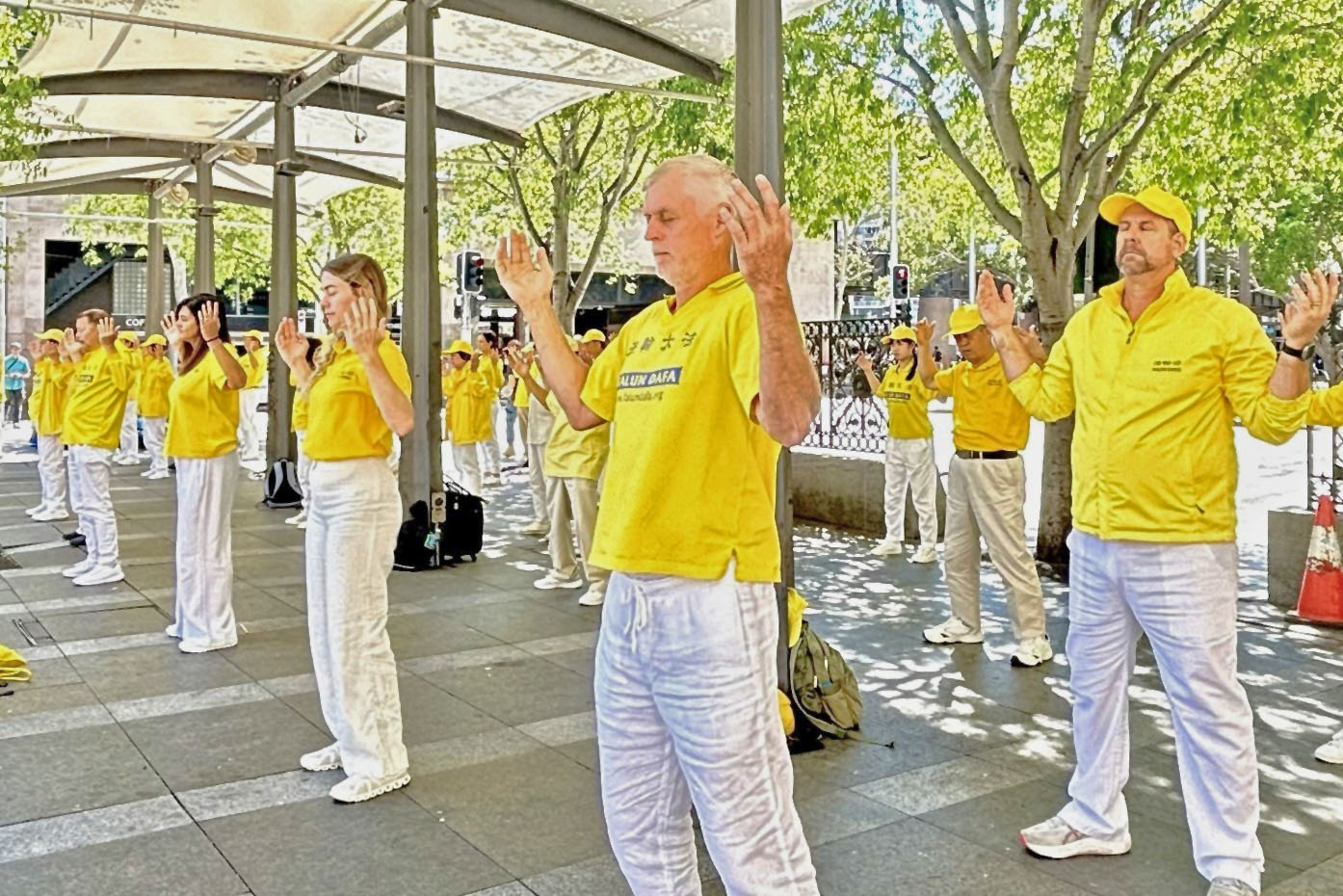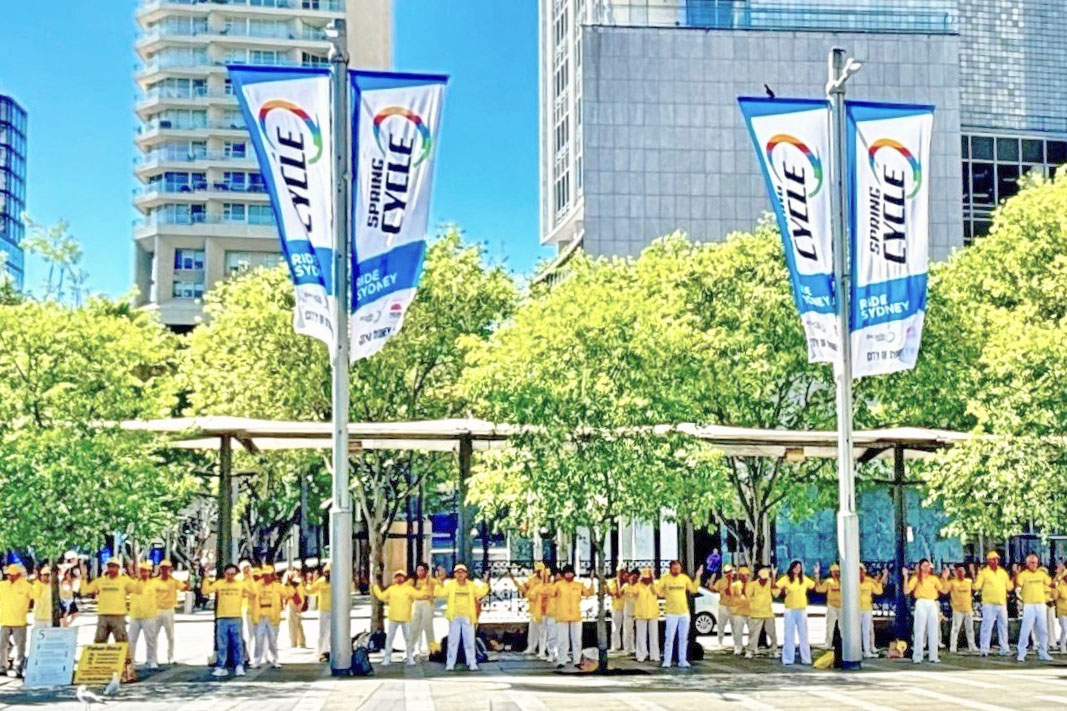 在海关大楼广场举办讲真相活动的前一天,法轮功学员在悉尼马丁广场(Martin Place)举行了大型集体炼功活动,并在市中心进行了盛大游行,当天的活动吸引了大量市民游客观看。