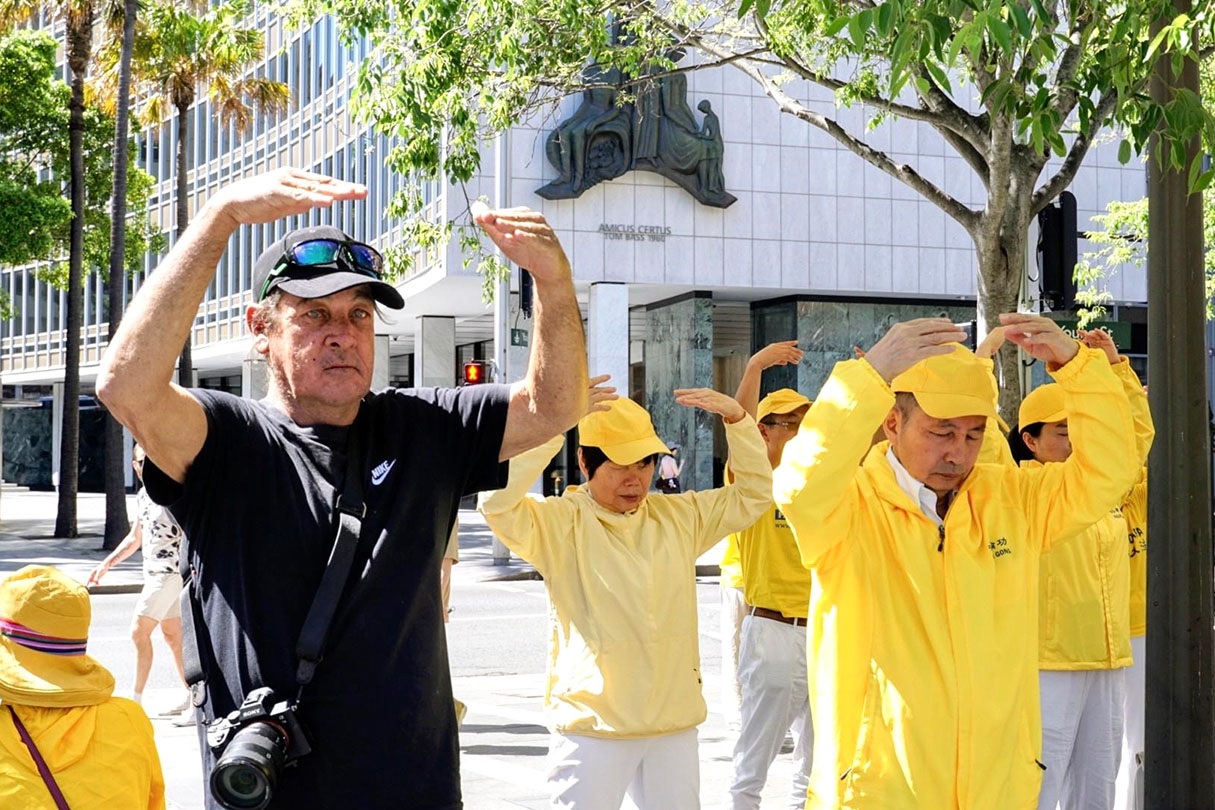穆罕默德·阿卜杜勒·阿齐兹(Muhhamad Abdul Aziz )说:“我非常感谢法轮功学员在这里所做的一切,他们致力于为所有人争取自由,非常鼓舞人心。感谢所有参与者。作为澳大利亚公民,这对我意义重大。”
