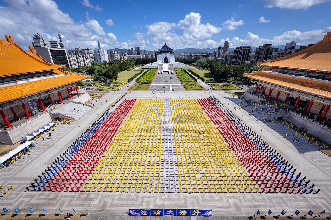 ![]() 图1:二零二五年十月十八日,约五千名法轮功学员在台北自由广场排字,排出历年来最大的法轮图形和“法轮常转”四字。 |