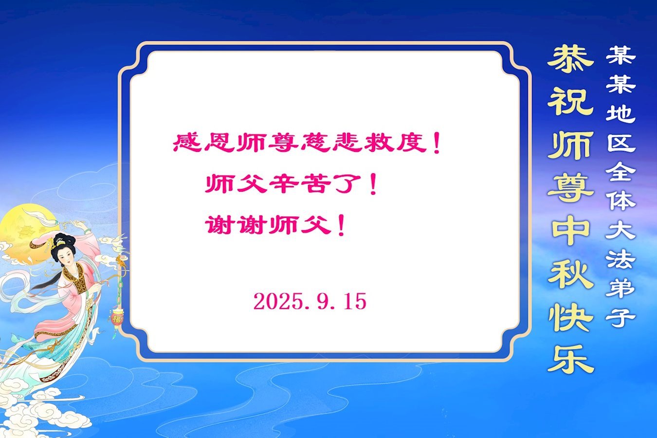 恭贺师尊中秋节快乐!感谢师尊慈悲救度!