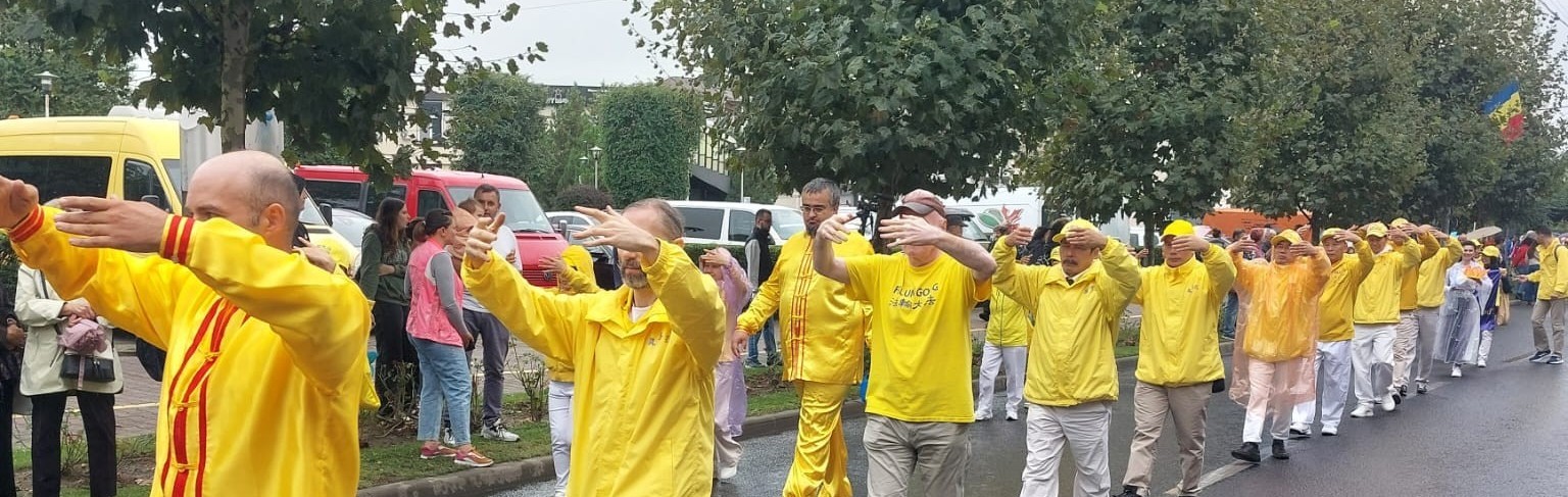 ![]() 图1~2:二零二五年九月十九日,罗马尼亚巴亚马雷市政府主办第三十届栗子节,法轮功学员在游行中演示功法。 |
