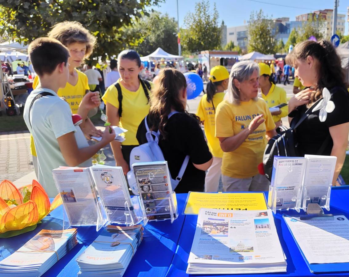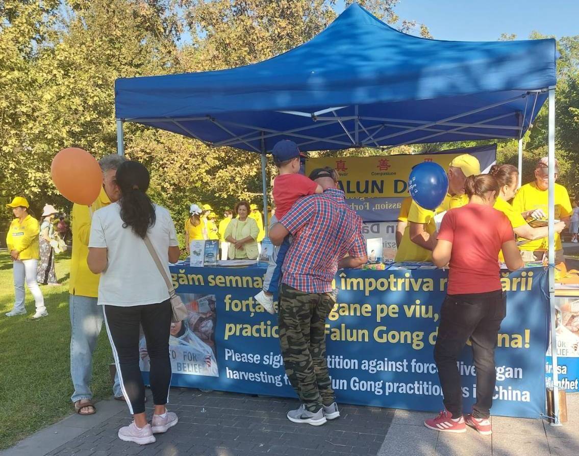 九月十九日(星期五)上午十一点至晚九点,学员们在马拉酒店附近的尤利乌·马纽雕像(the Statue of Iuliu Maniu)附近设立了信息展位,并于下午十二点三十分至三点参加了游行。九月二十日(星期六)上午十一点至晚九点,信息日活动继续进行。星期天上午九点至十一点,学员们在雷吉纳玛丽亚公园(Regina Maria Park)的法轮功炼功点演示功法,并于中午十二点至晚上九点在尤利乌·马纽雕像附近继续进行信息日活动。