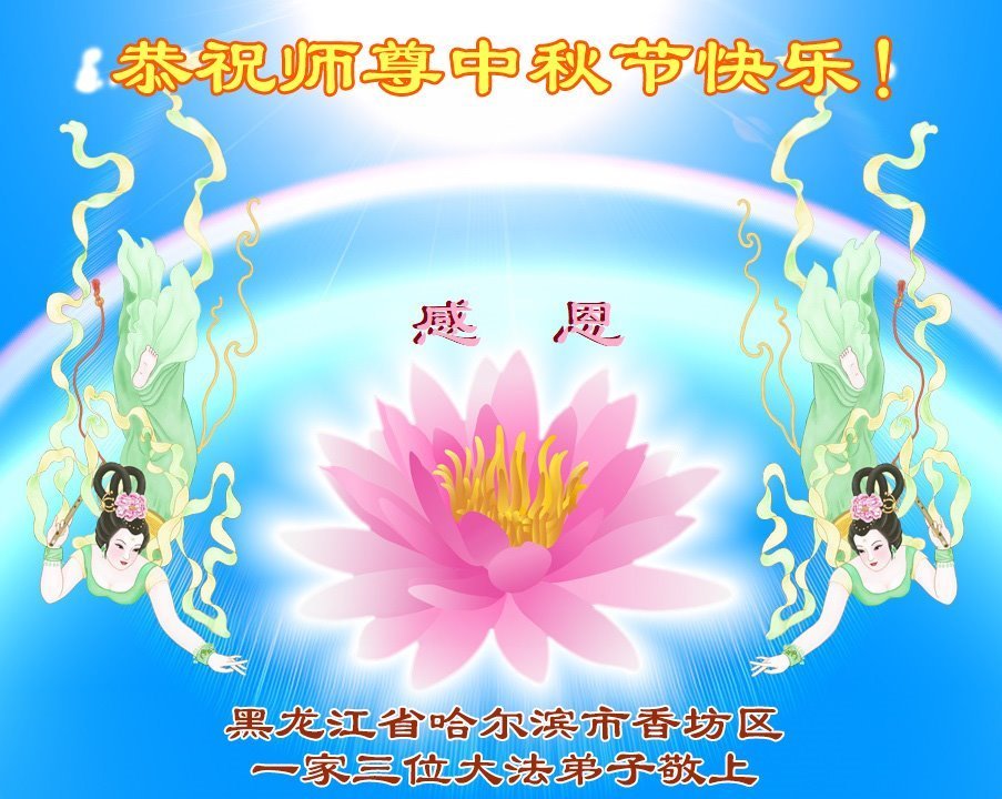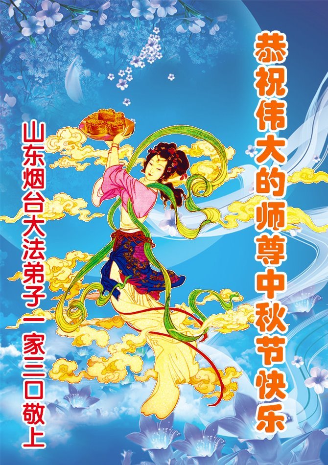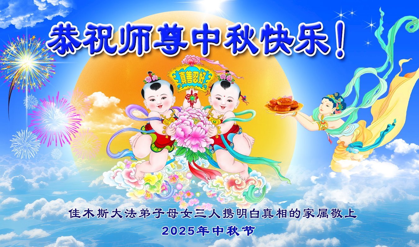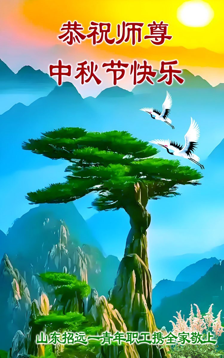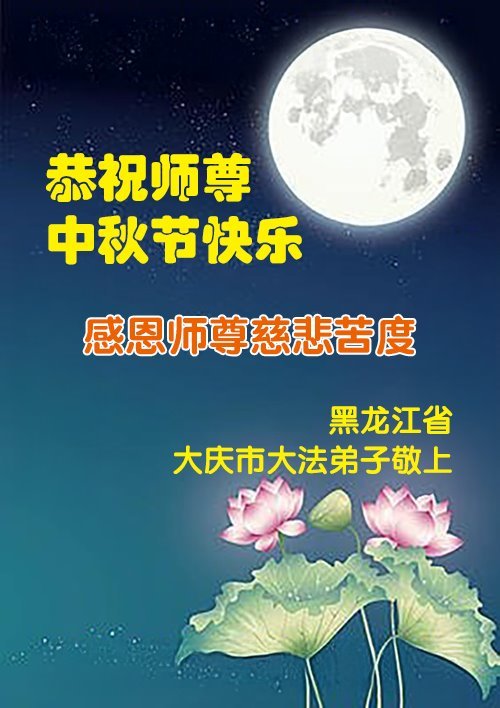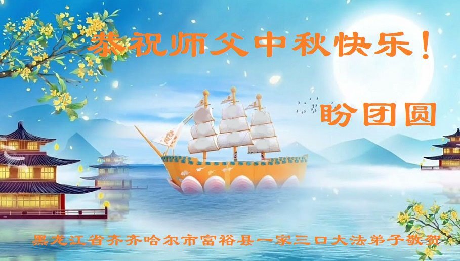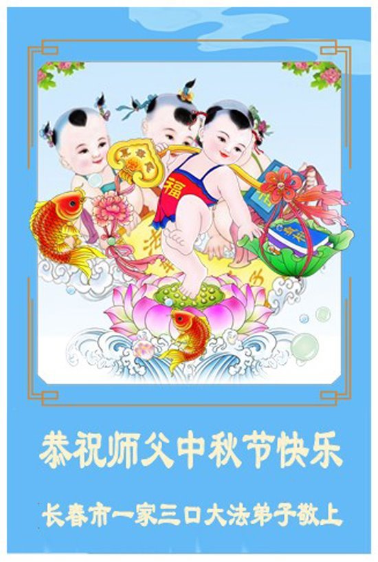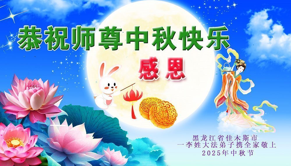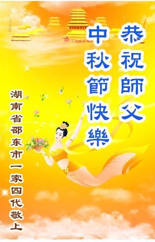 师父您好!我的家人们很早就明白了真相三退了,选择了美好的未来。在中秋佳节来临之际,全家衷心感恩大法师父,并祝愿大法师父中秋节快乐!