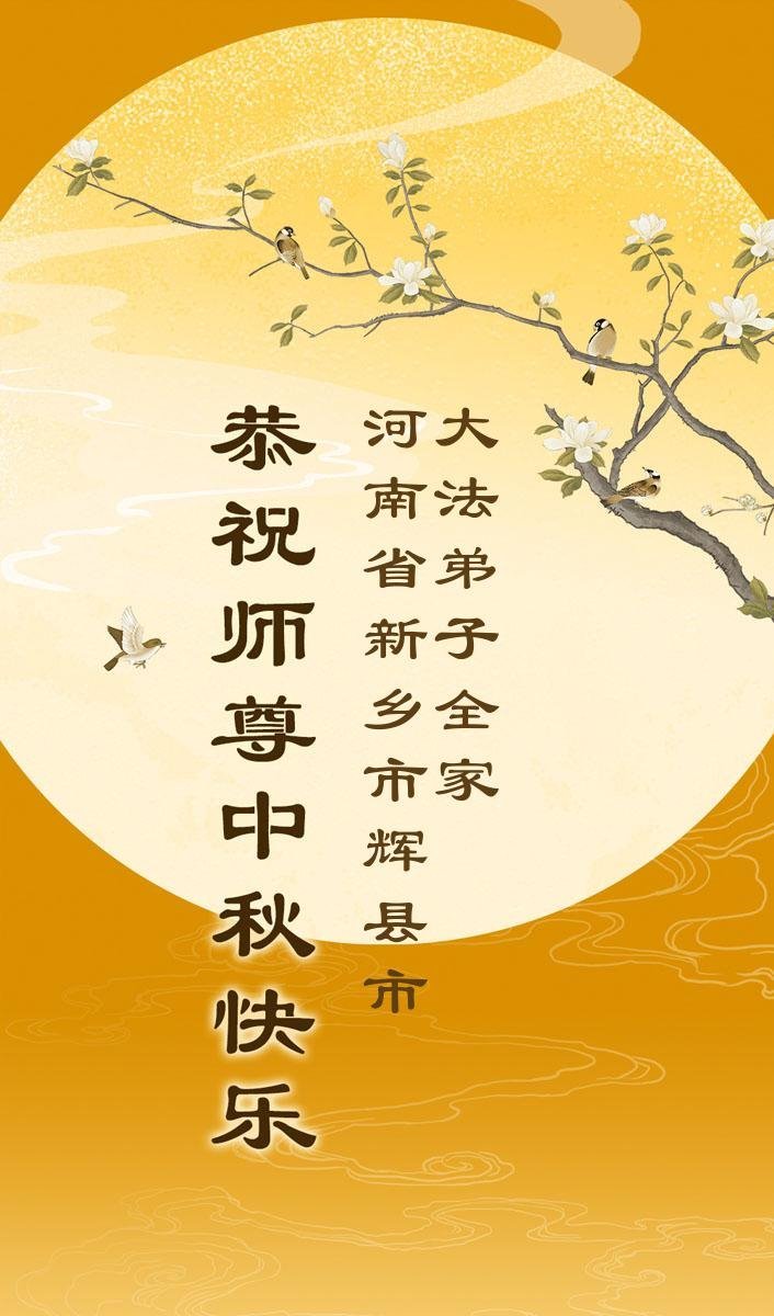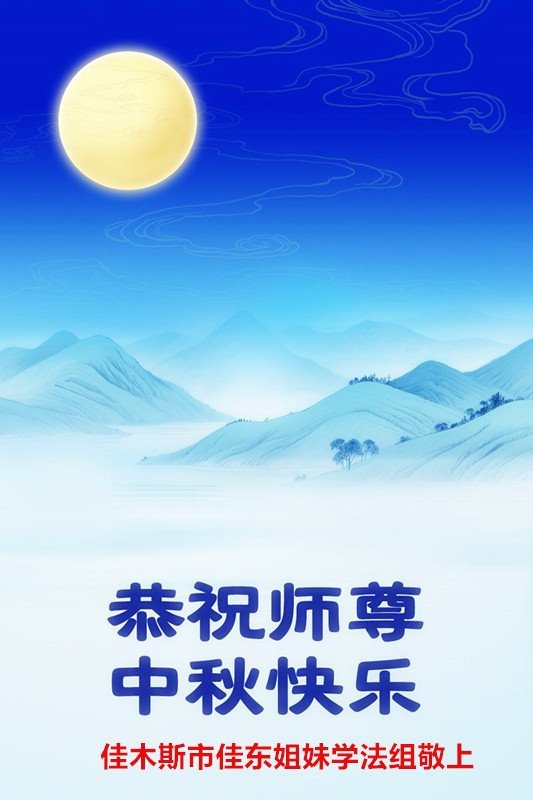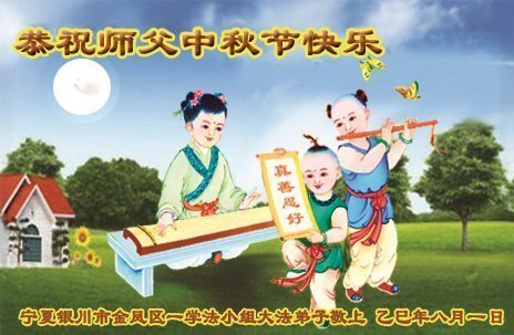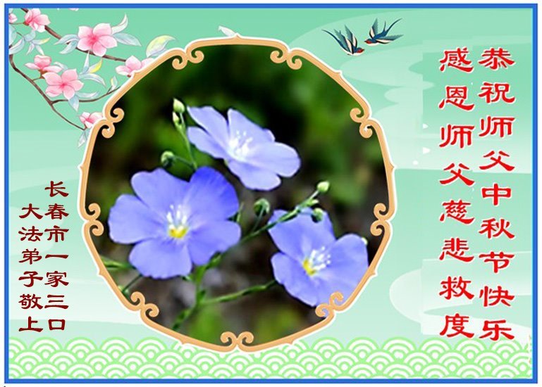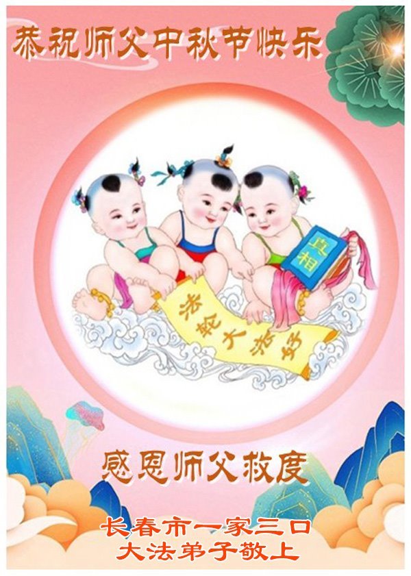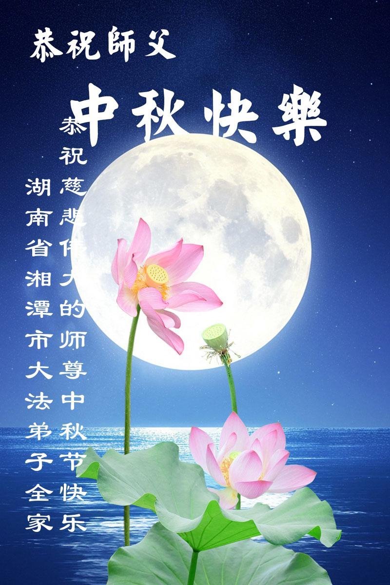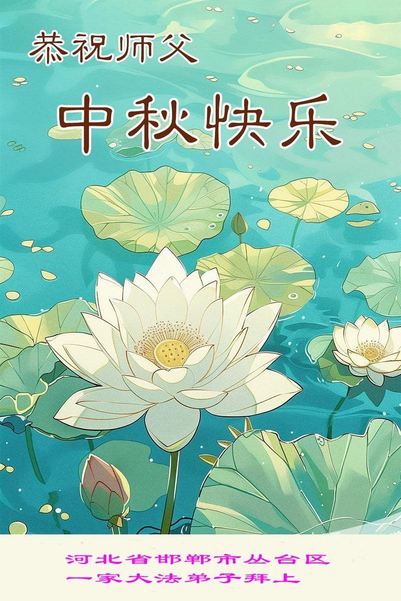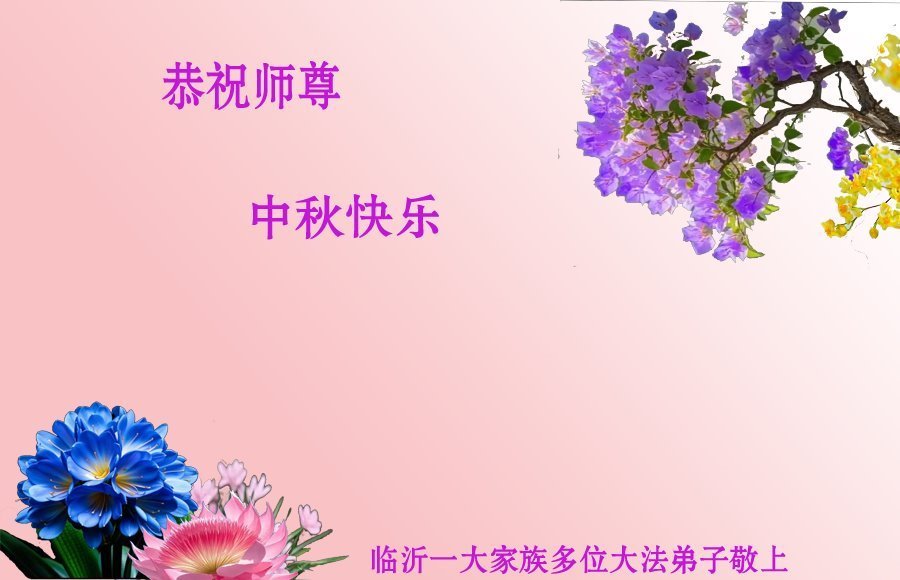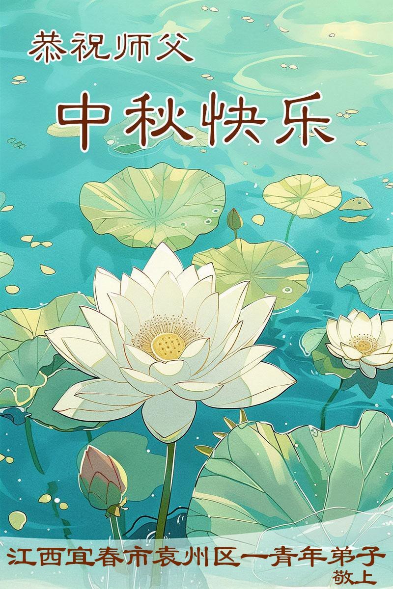 师父您好!我的家人们很早就明白了真相三退了,选择了美好的未来。在中秋佳节来临之际,全家衷心感恩大法师父,并祝愿大法师父中秋节快乐!