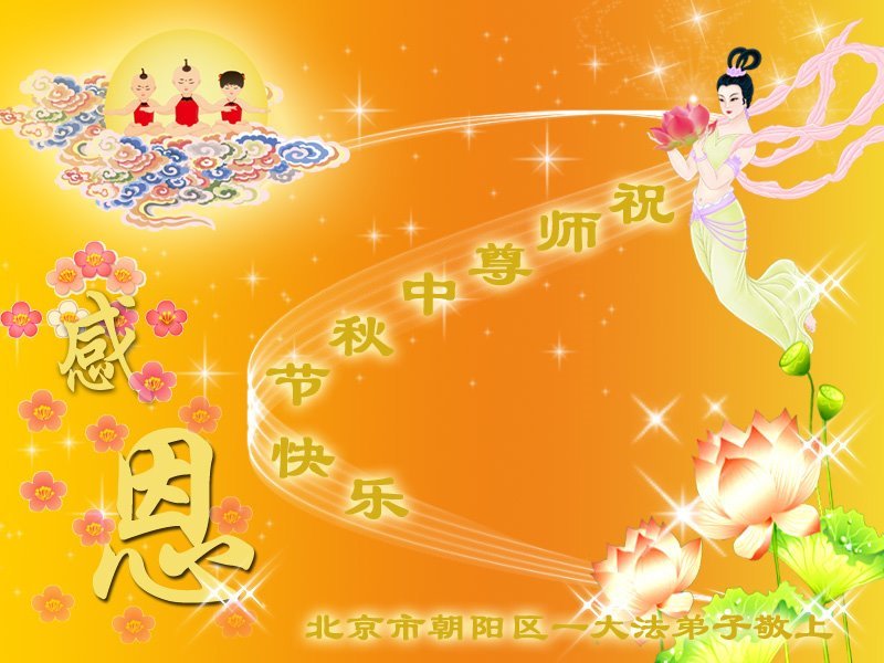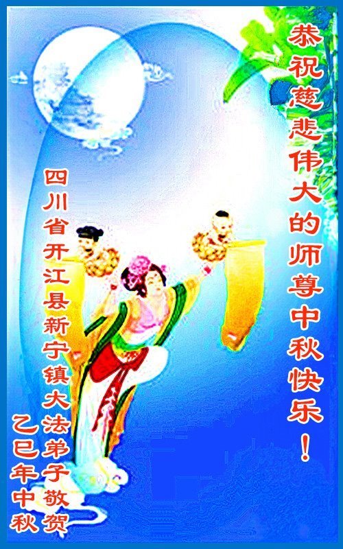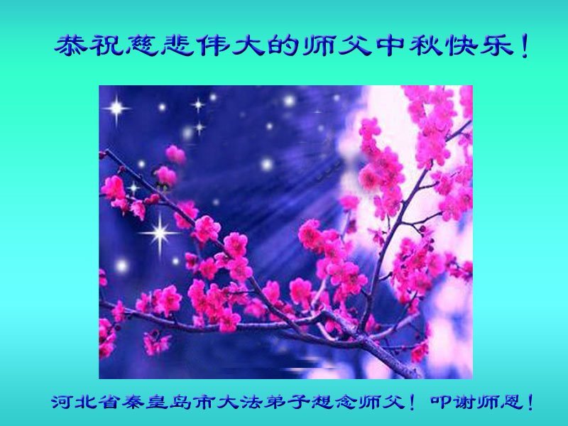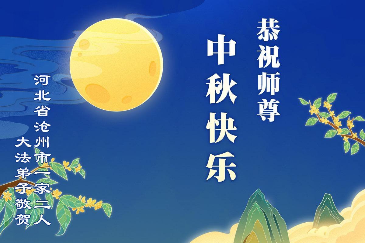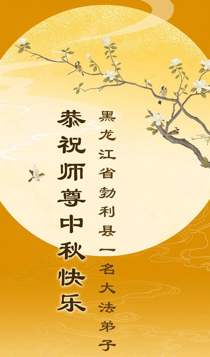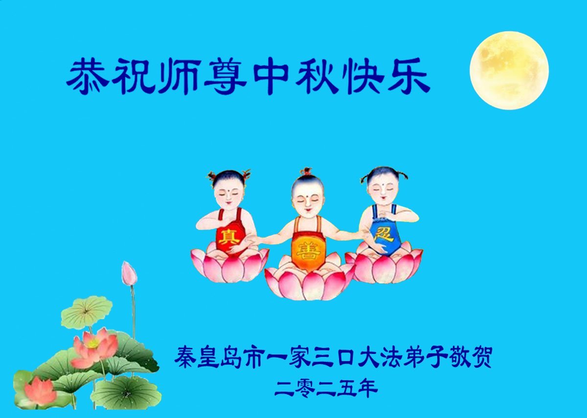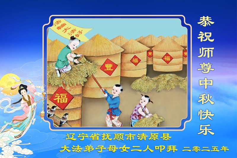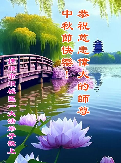 师父您好!我的家人们很早就明白了真相三退了,选择了美好的未来。在中秋佳节来临之际,全家衷心感恩大法师父,并祝愿大法师父中秋节快乐!