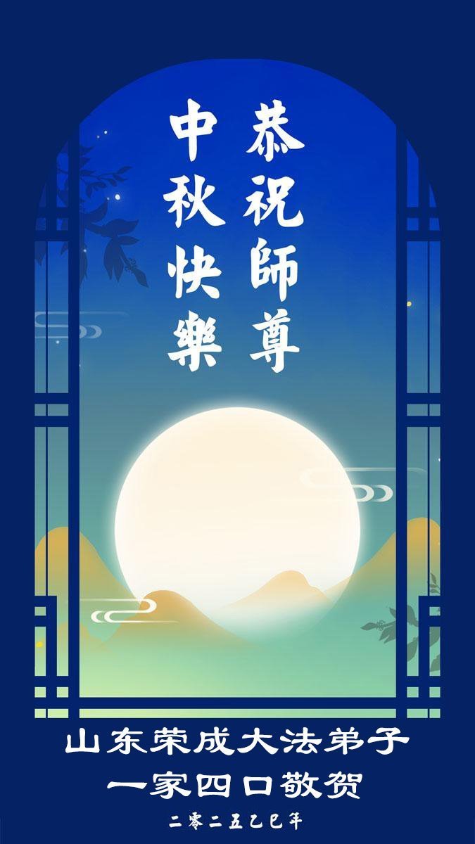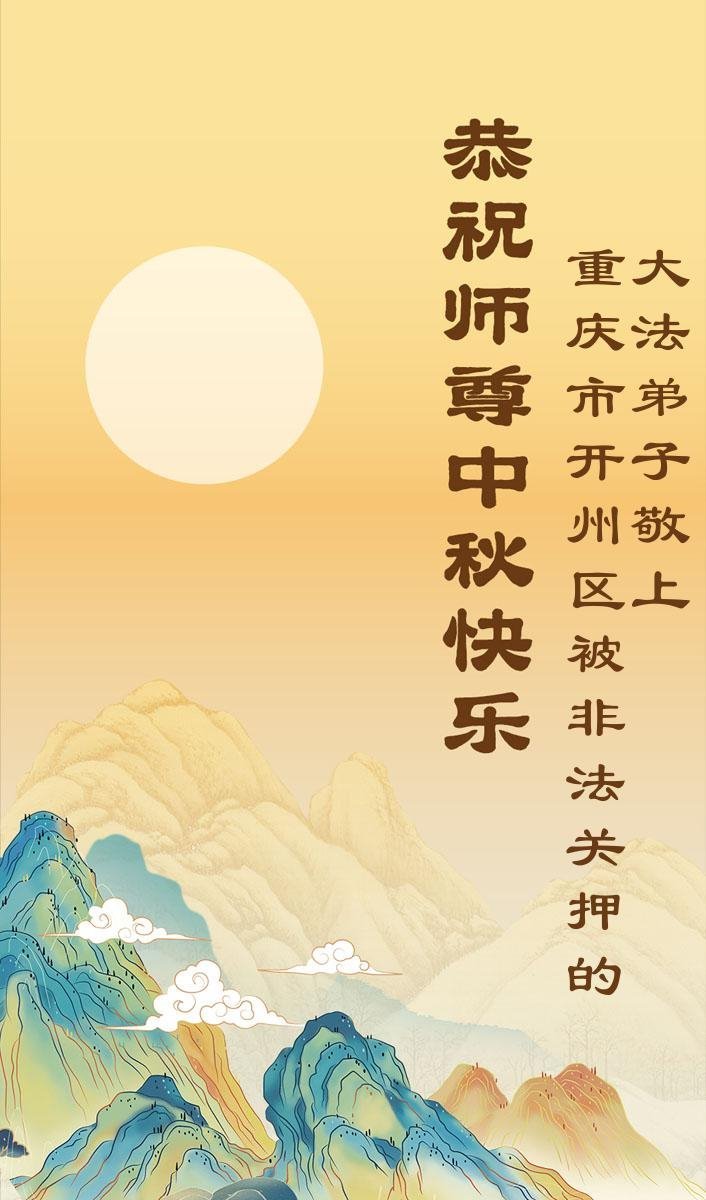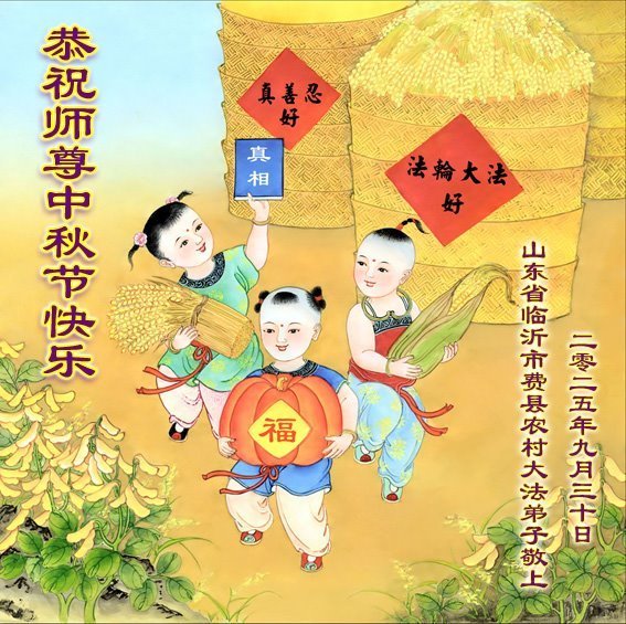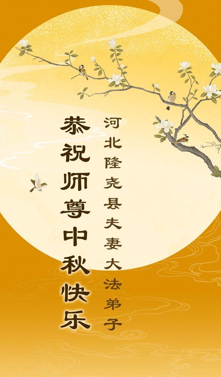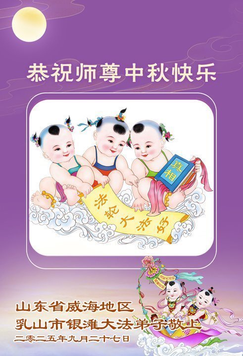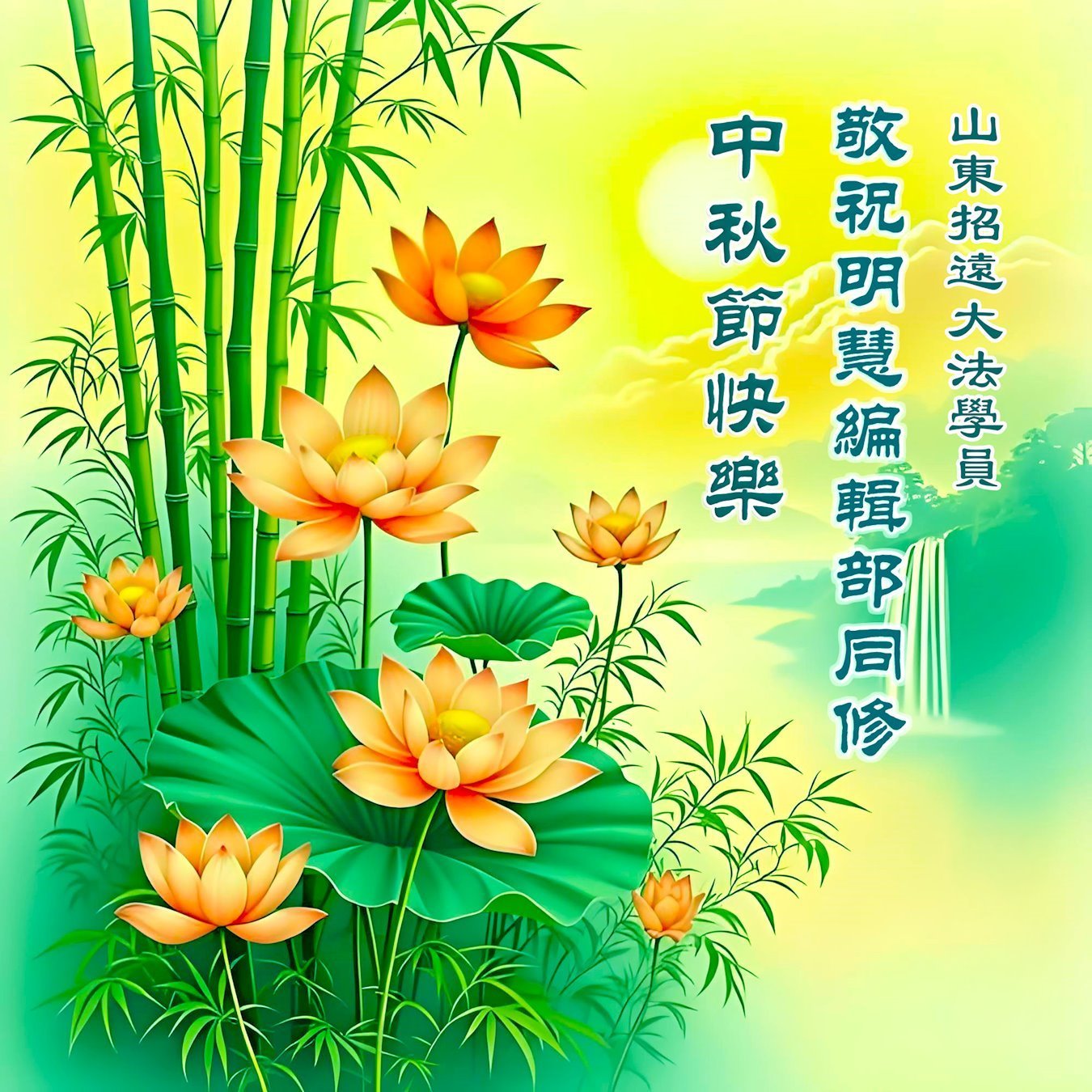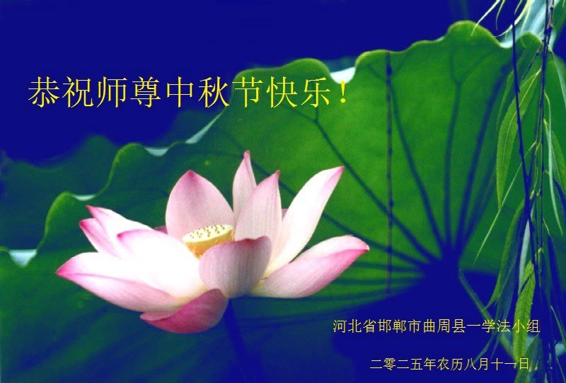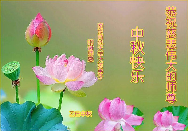 师父您好!我的家人们很早就明白了真相三退了,选择了美好的未来。在中秋佳节来临之际,全家衷心感恩大法师父,并祝愿大法师父中秋节快乐!