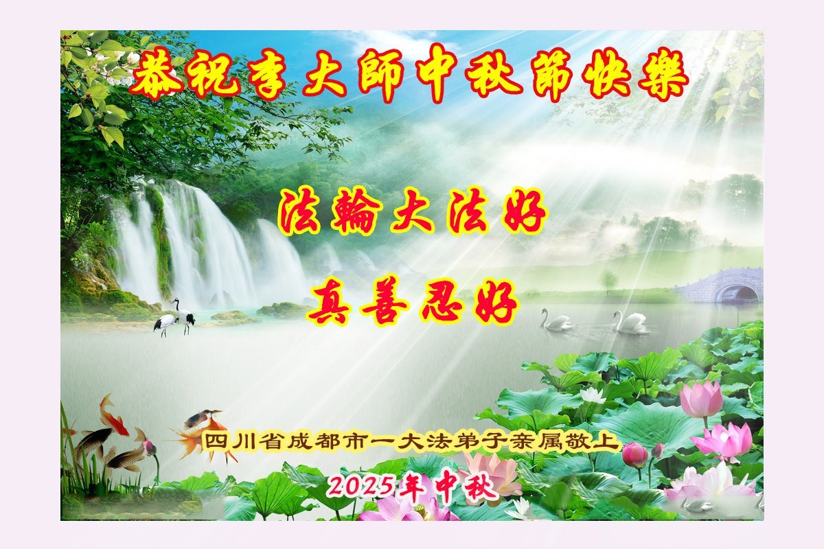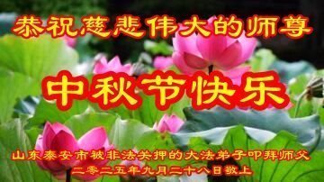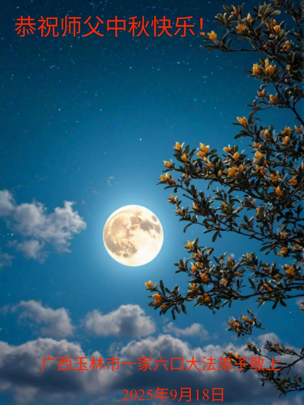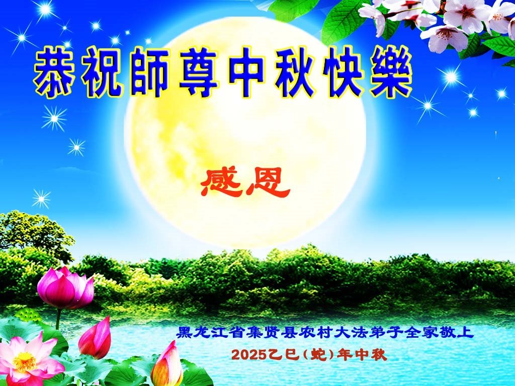 【明慧网二零二五年十月五日】(明慧网通讯员综合报道)海天一碧月儿圆,随师正法在人间。在这中秋佳节万家团圆的日子里,中国大陆各省市大法弟子们万分想念师父,感恩师父!感念师尊亲临世间传大法,赐予众生得救的万古机缘。不管未来的路是艰难还是平坦,弟子们都会义无反顾的紧随师尊,把阳光与希望洒向人间。