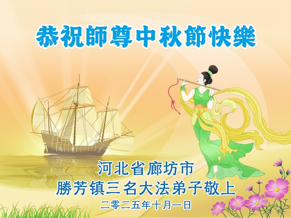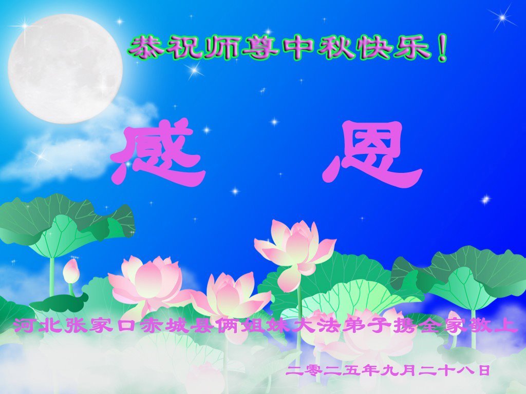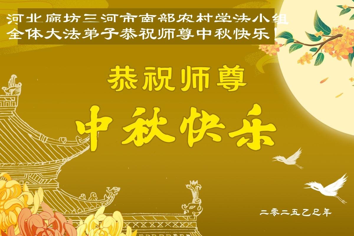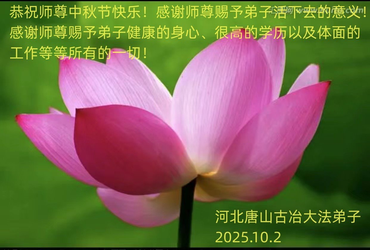 【明慧网二零二五年十月五日】(明慧网通讯员综合报道)海天一碧月儿圆,随师正法在人间。在这中秋佳节万家团圆的日子里,中国大陆各省市大法弟子们万分想念师父,感恩师父!感念师尊亲临世间传大法,赐予众生得救的万古机缘。不管未来的路是艰难还是平坦,弟子们都会义无反顾的紧随师尊,把阳光与希望洒向人间。