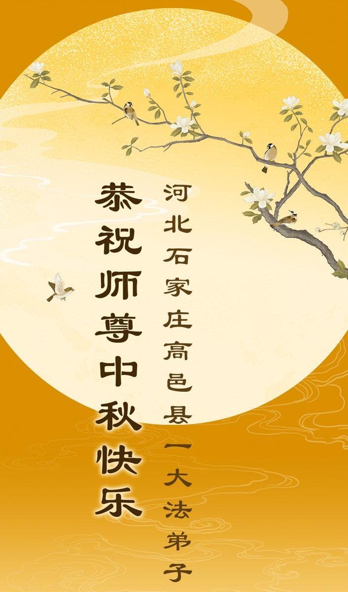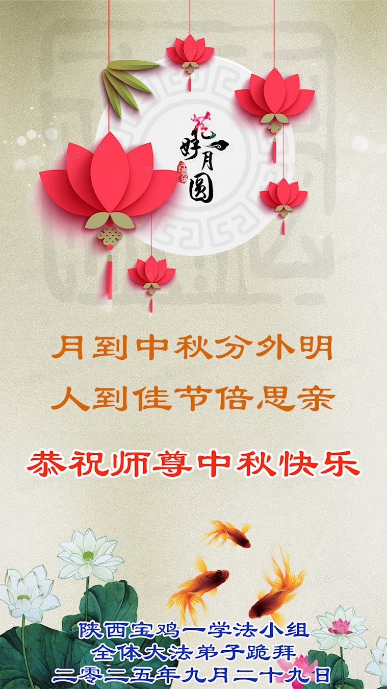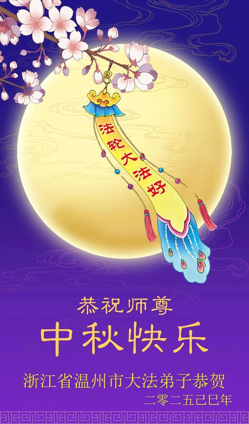 每逢佳节倍思亲!值此中秋佳节到来之际,我们宁波全体大法弟子将我们对师尊的思念与问候通过明慧转达,请师尊接受我们永恒的敬意与无尽的感恩!师恩浩荡!感恩师尊的慈悲救度!无论今后证实法与救度众生有多难多险,无论遇到多少意想不到的魔难与考验,弟子们都会坚修大法,同化真善忍,精進再精進,做好三件事,决不辜负师尊的慈悲苦度。