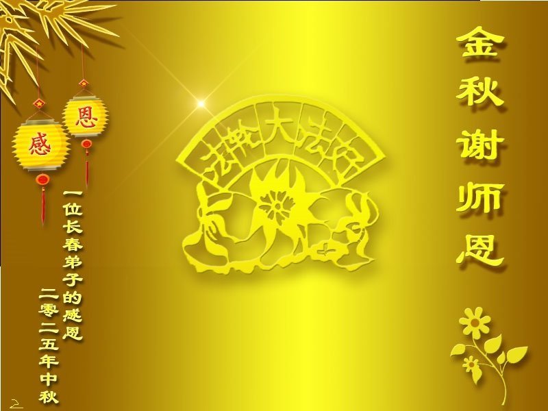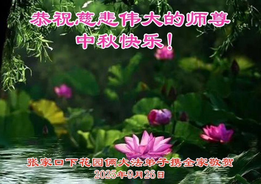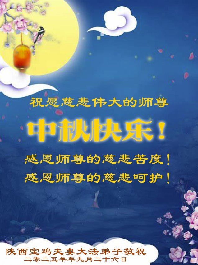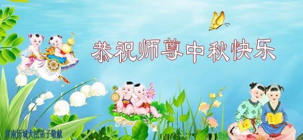 一年一度的中秋来临之际,弟子代全家感恩师尊的慈悲救度!是法轮大法改变了我,让我做一个更好的人。弟子用千言万语也表达不了对师尊的感恩,师父为弟子承受的太多太多,弟子无以回报,只有精進实修,多救人,以报师恩!
