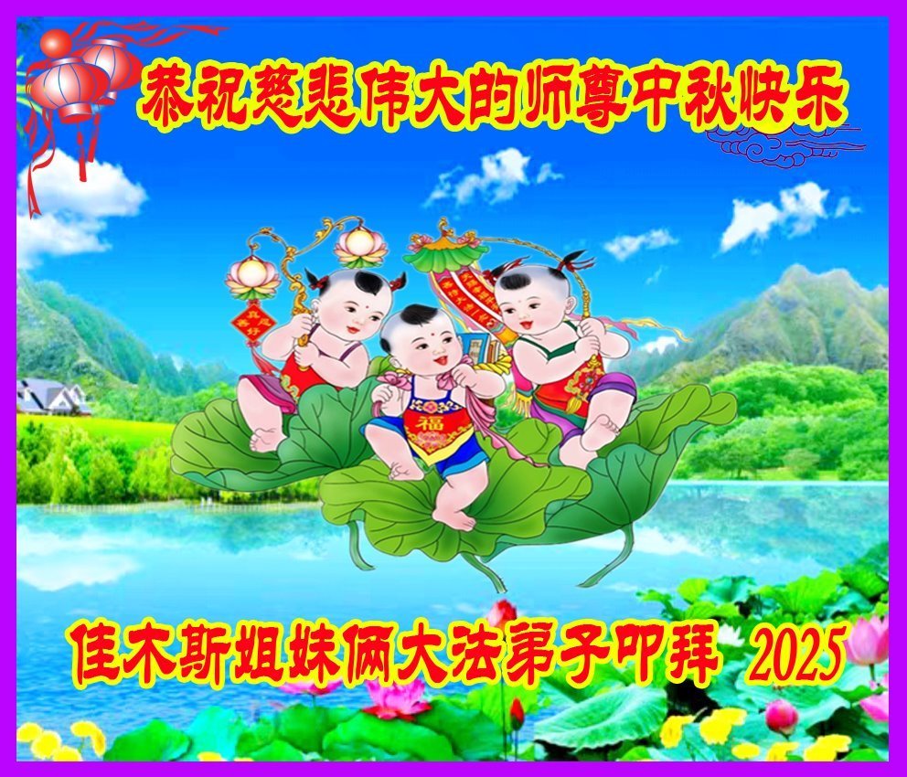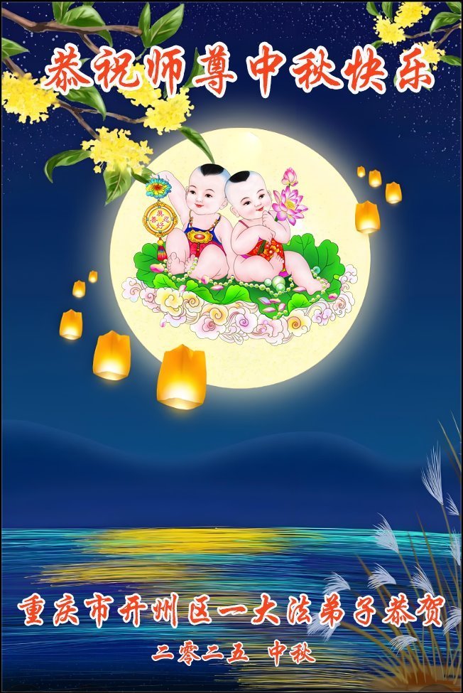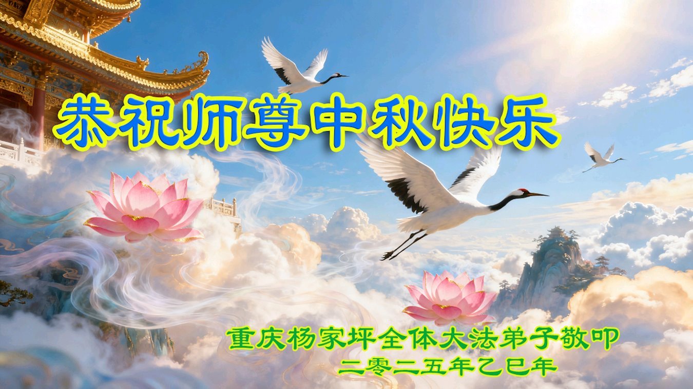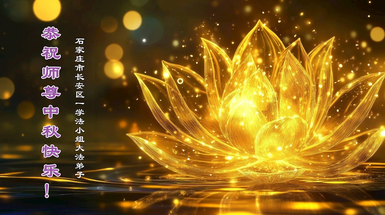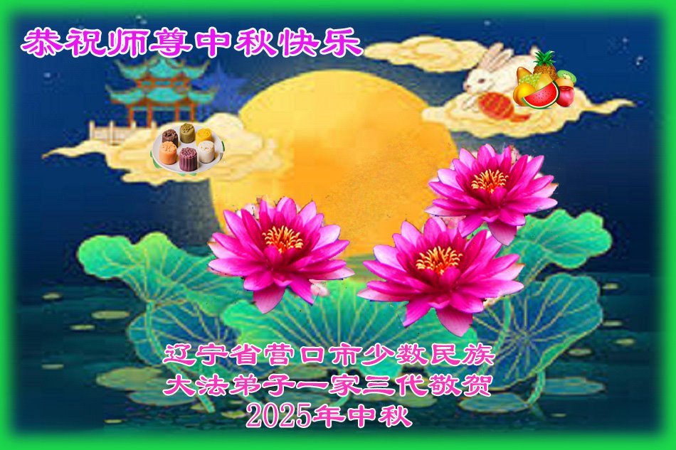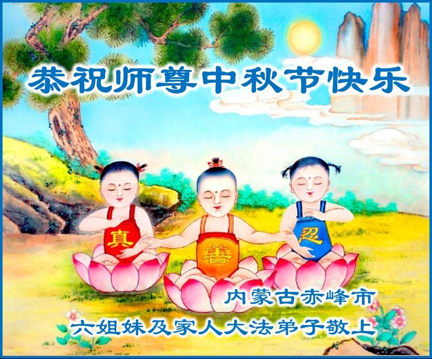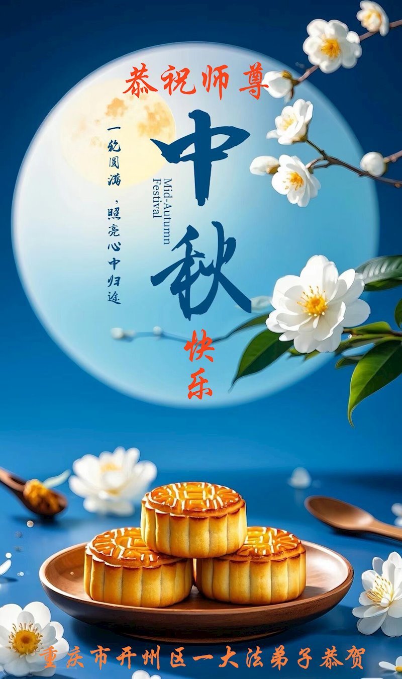 我们大法弟子携家人和明真相的世人恭祝师尊中秋节快乐!师尊辛苦了!谢谢师尊的慈悲苦度!弟子一定破除旧势力的安排,消除间隔,形成强大的整体,反迫害,救度众生。弟子们要多学法,学好法,发好正念,向内找,兑现自己的誓约,跟师父回家。
