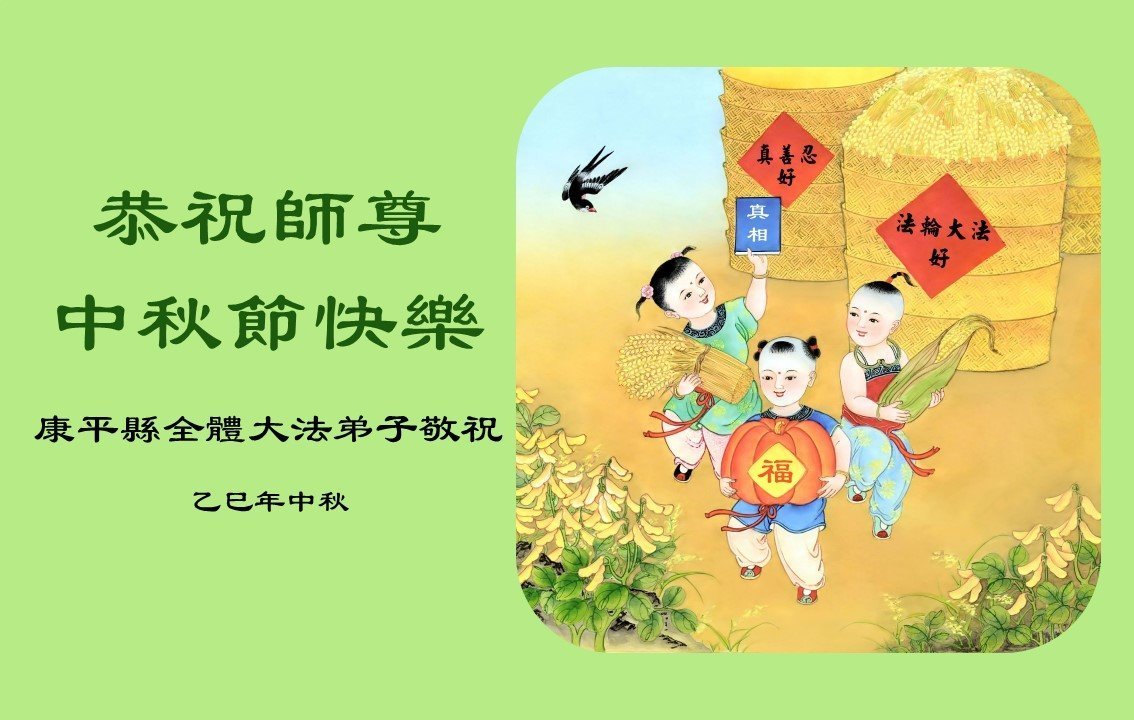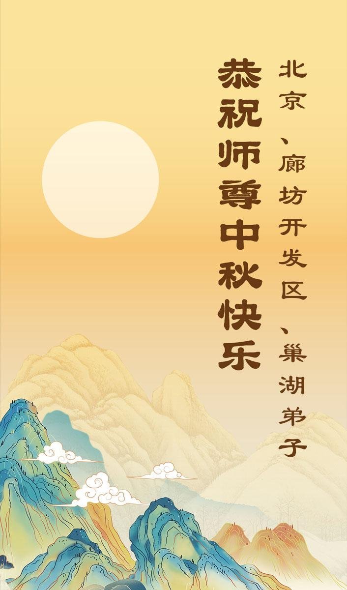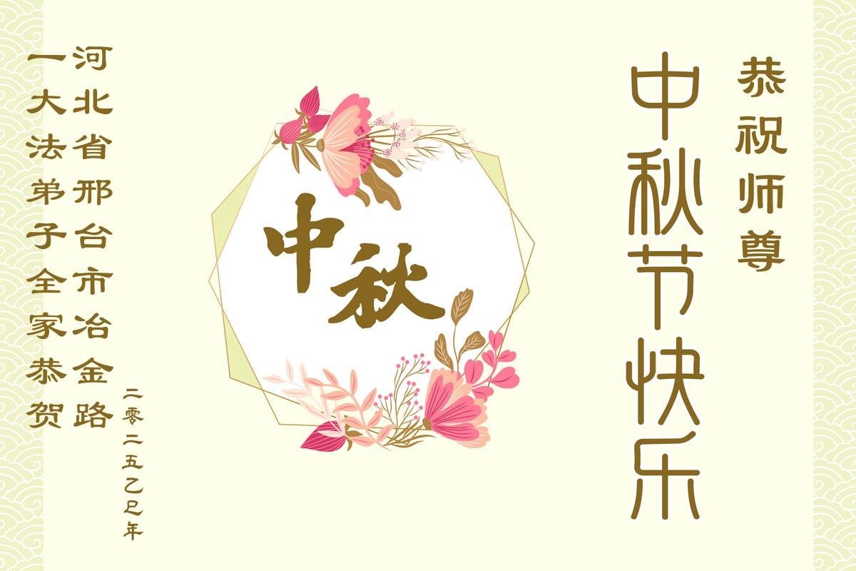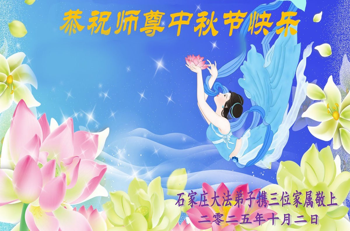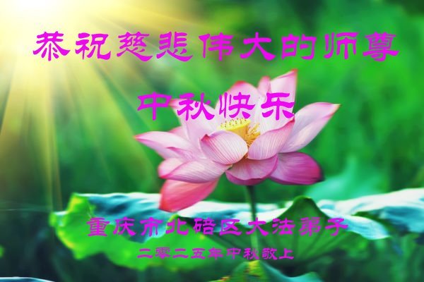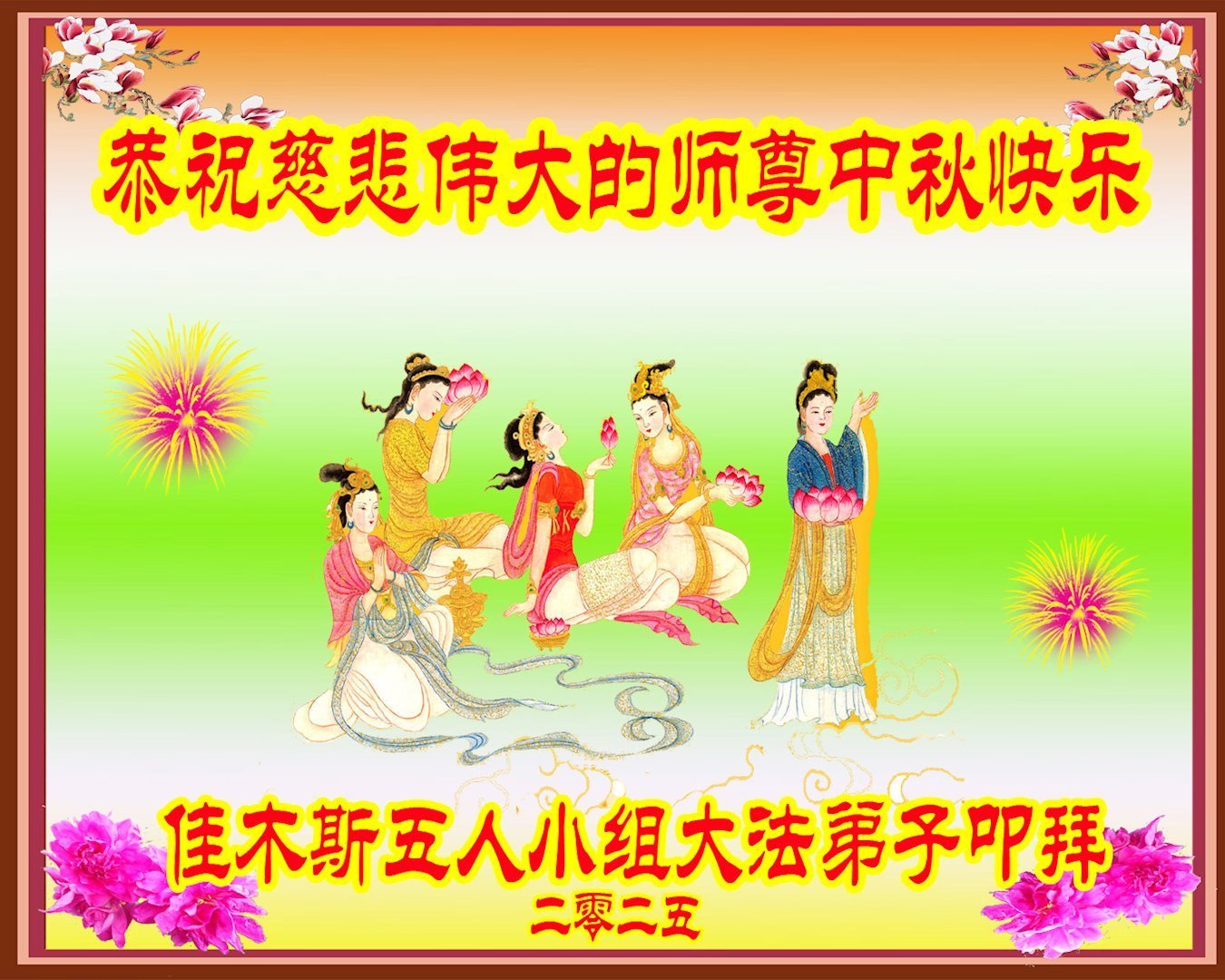 我们大法弟子携家人和明真相的世人恭祝师尊中秋节快乐!师尊辛苦了!谢谢师尊的慈悲苦度!弟子一定破除旧势力的安排,消除间隔,形成强大的整体,反迫害,救度众生。弟子们要多学法,学好法,发好正念,向内找,兑现自己的誓约,跟师父回家。