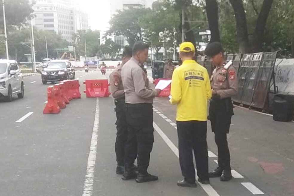 甘比尔区警察局副局长、警务专员德维·哈博沃(Dwi Harbowo)也来到法轮功学员的信息台前,表示执勤警察将为学员的活动提供安全保障,并祝愿活动顺利进行。