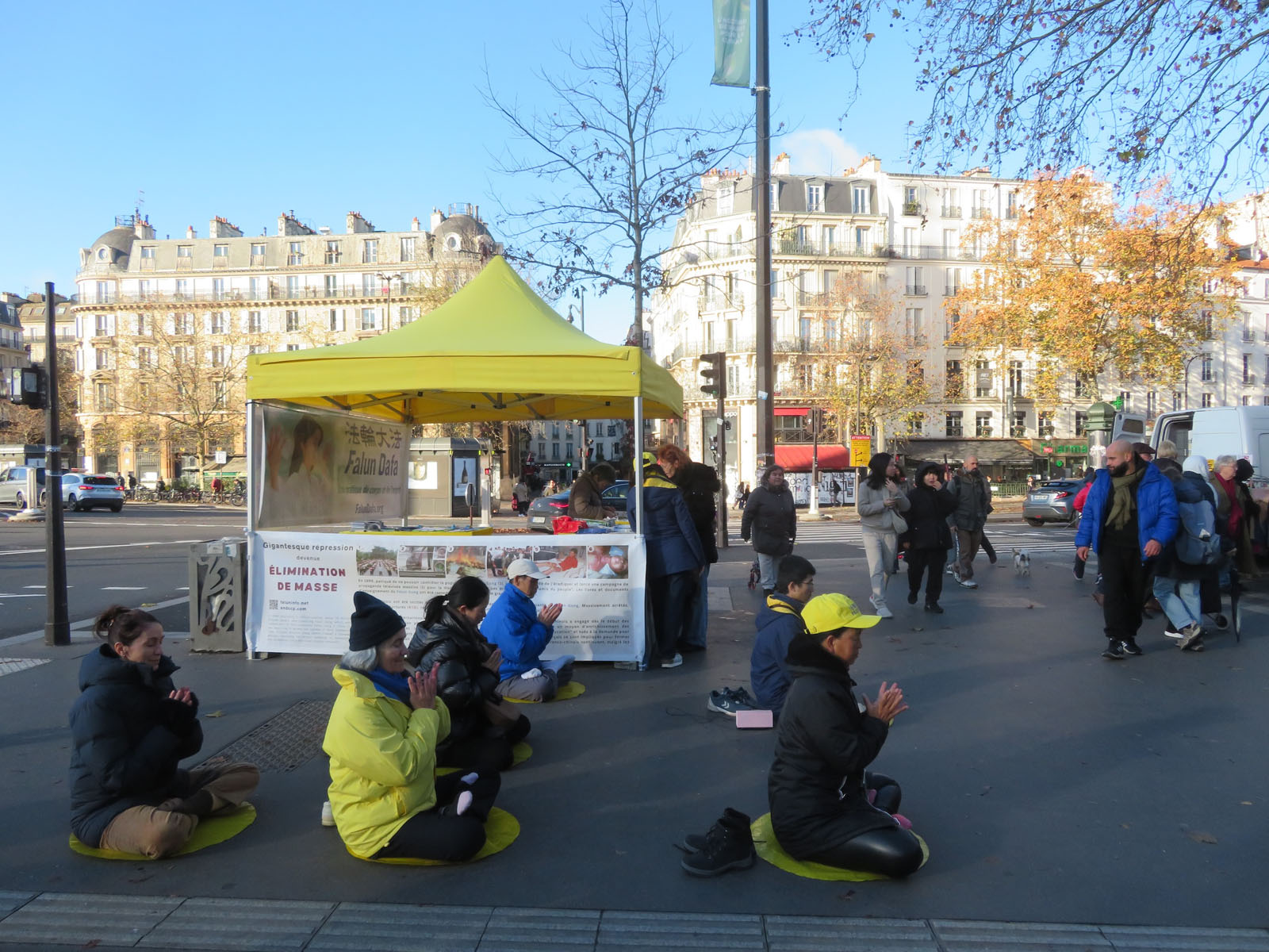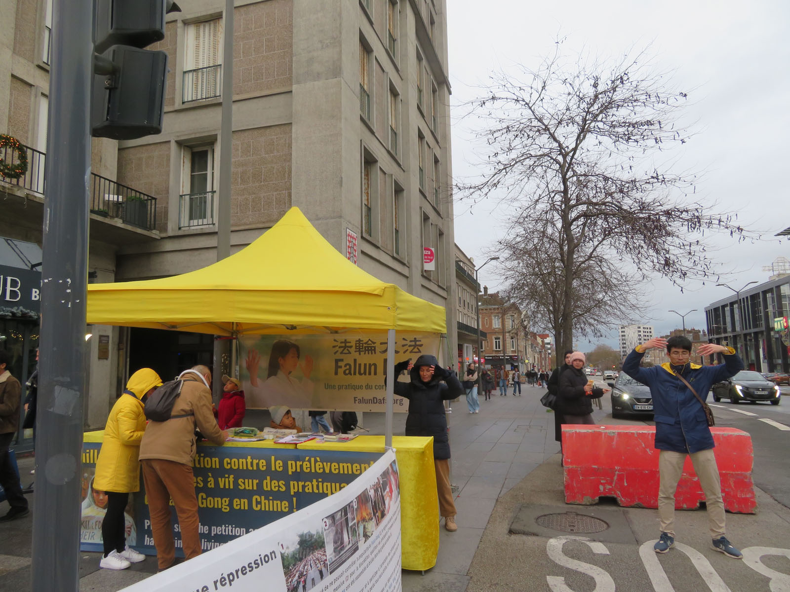 二零二五年十一月二十九日星期六,在南特市埃吕斯广场(Place de l’écluse),法国西部地区的法轮功学员设立了展台,向路人介绍法轮功及在中共对法轮功学员的迫害。