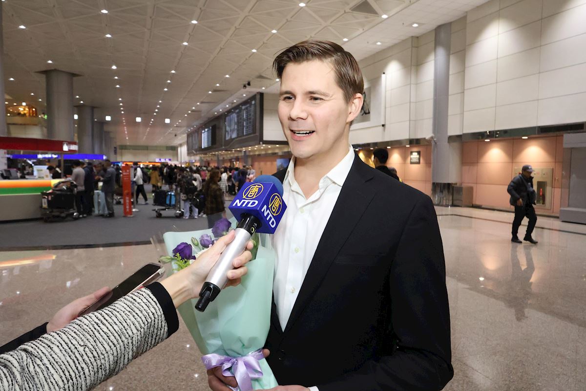 ![]() 图6:美国神韵艺术团十二月二十八日傍晚抵达桃园国际机场,主持人唐韵接受采访表示,神韵展现的是没有共产党的中华文化。 |