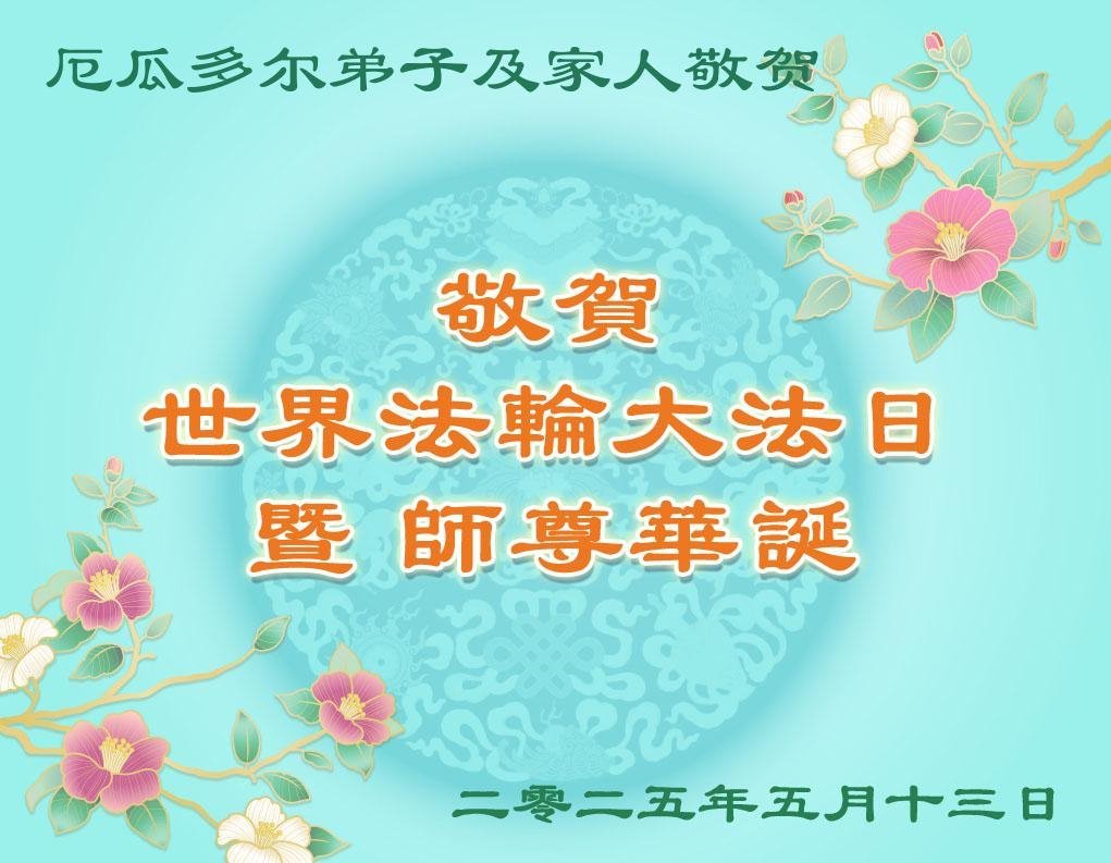以下是来自韩国、日本、印度、马来西亚、新加坡、中国、菲律宾、印度尼西亚、越南、老挝、泰国、香港、澳门、台湾、阿联酋、伊朗、土耳其、波兰、俄罗斯、法国、英国、爱尔兰、德国、西班牙、意大利、希腊、比利时、荷兰、芬兰、丹麦、瑞典、奥地利、挪威、斯洛伐克、克罗地亚、塞尔维亚、黑山、澳洲、新西兰、美国、加拿大、厄瓜多尔、哥伦比亚、委内瑞拉、巴西、秘鲁、拉脱维亚、波斯尼亚和黑塞哥维那等国家和地区大法弟子致敬师尊的部份贺词贺卡。