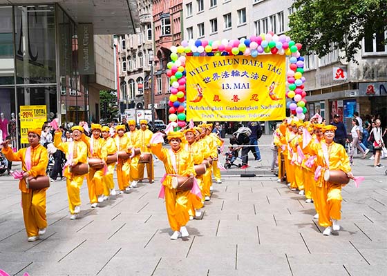 五月三日,法轮功学员在德国金融中心法兰克福采尔大街举办大型集会活动,庆祝第26届世界法轮大法日和法轮大法弘传世界33周年。