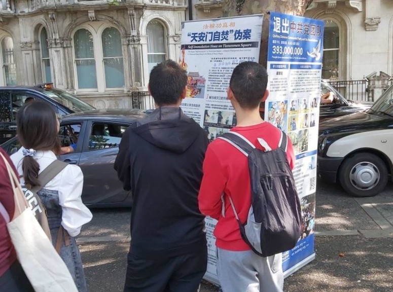 多年来,在伦敦大英博物馆前法轮功学员的真相点上,许多大陆游客主动了解真相,他们当中有的立即声明“三退”,有的带走资料回去仔细研读。也有人感慨,在国内完全看不到这些信息,直到出国才第一次听说。