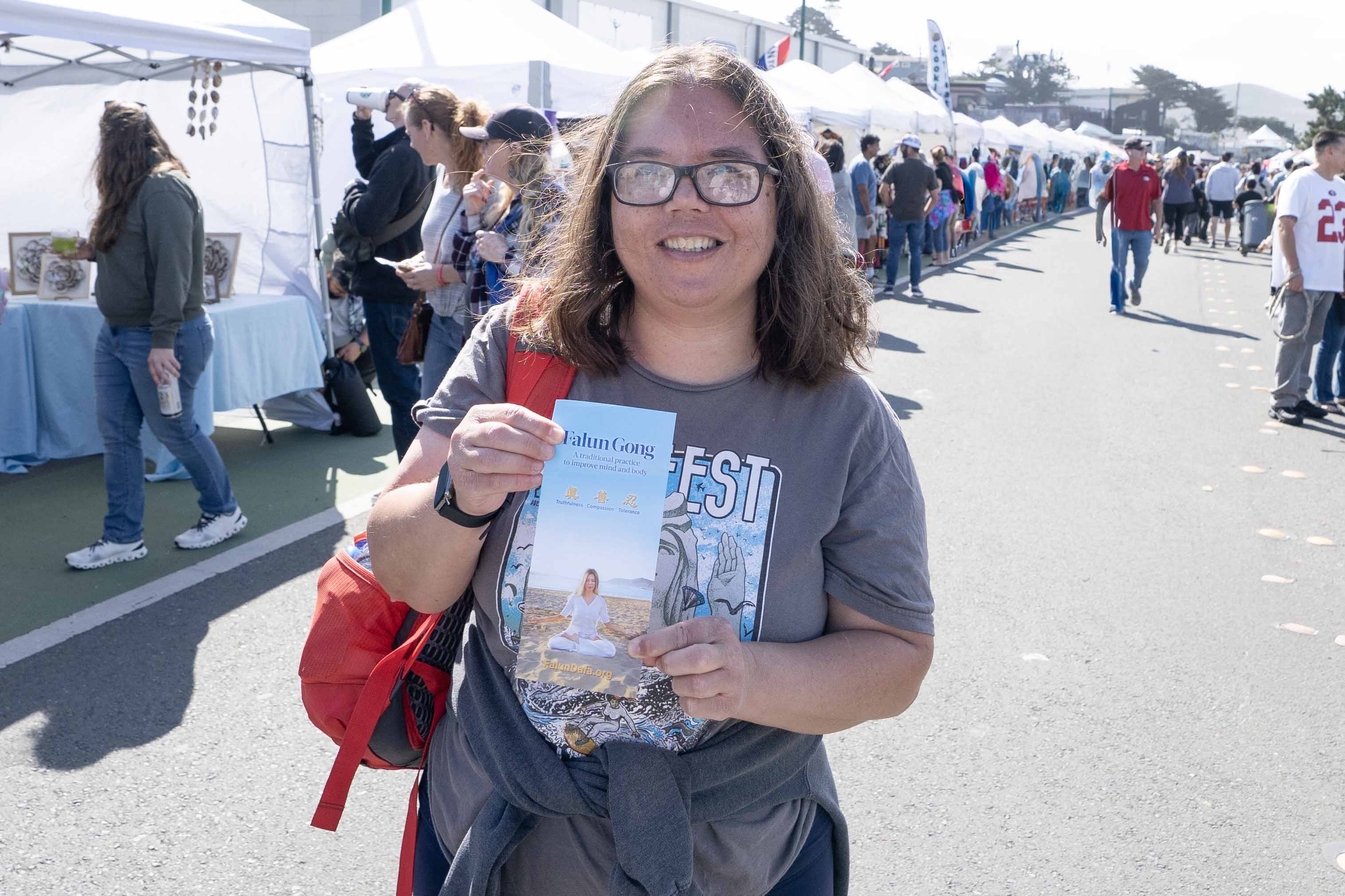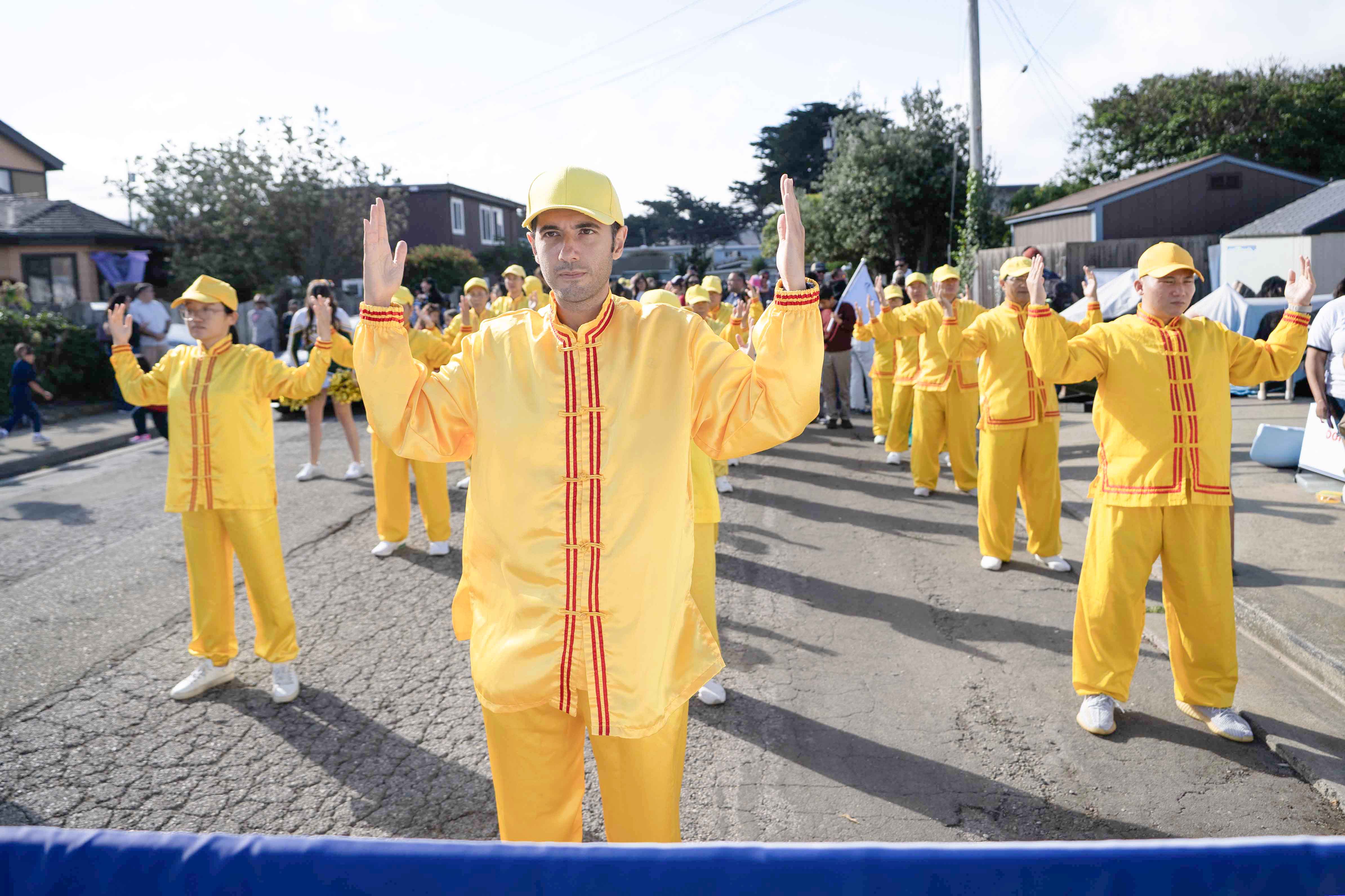 在帕西菲卡市长大的艾米(Amy)已经搬离该市,住在东湾,这次是专门来观看游行而来。看到法轮功学员的队伍,她说,“我非常喜欢法轮功学员的队伍。他们让我感到平静。”