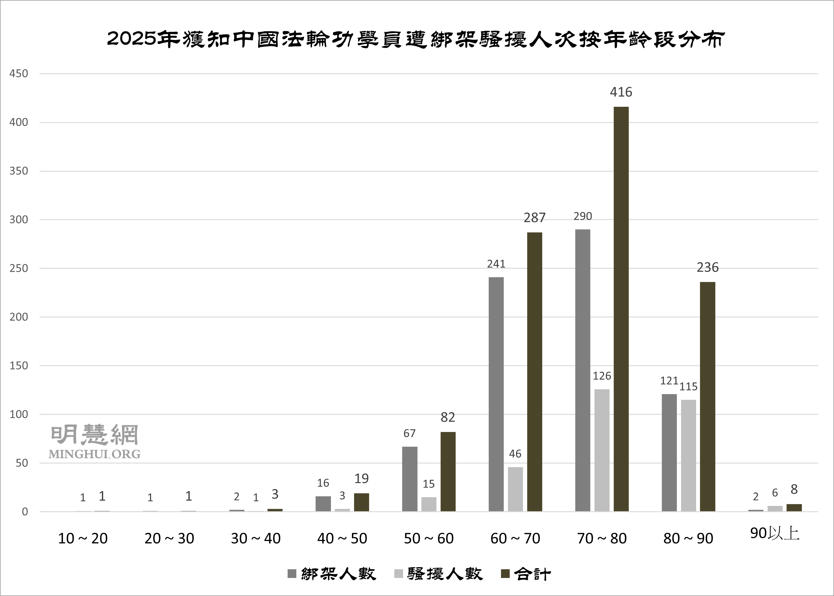 据明慧网报道统计,获悉,二零二五年有947名60岁以上老年法轮功学员遭绑架骚扰。