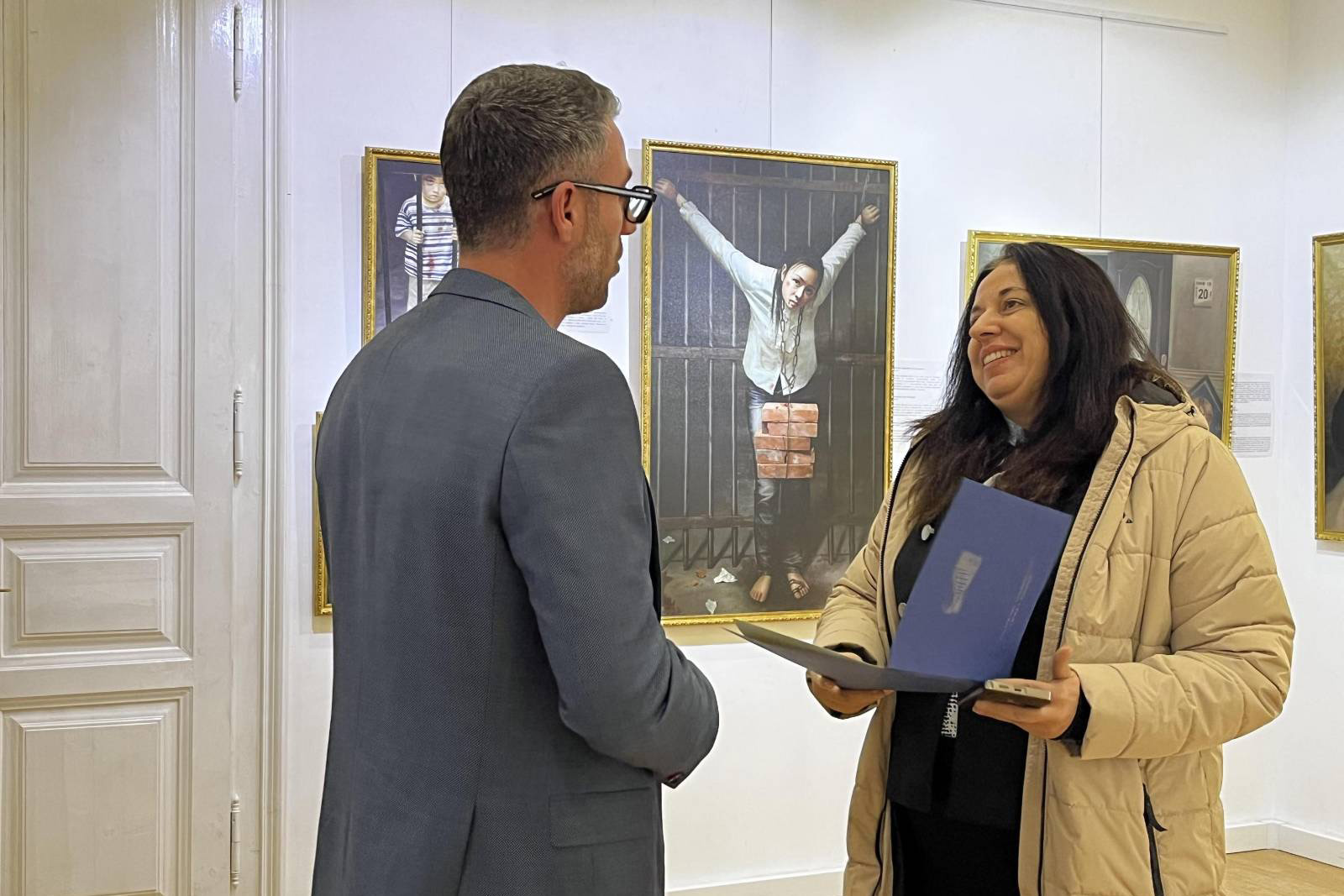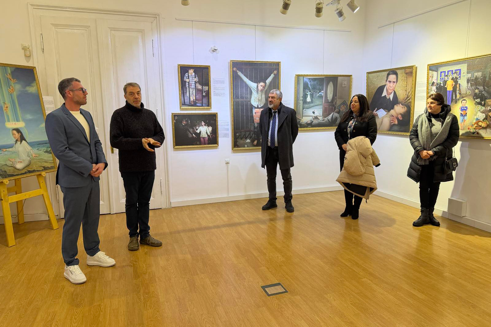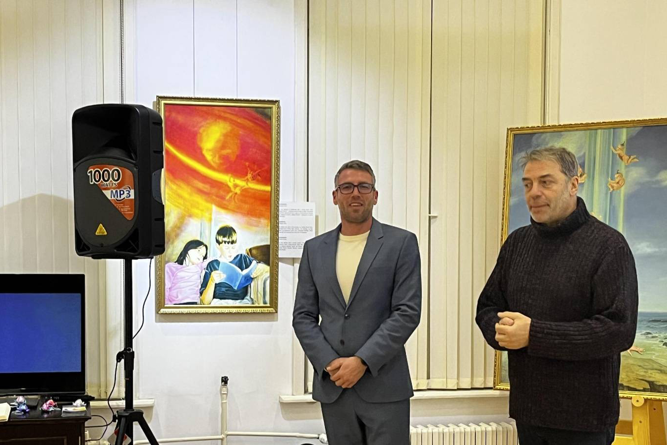 展览协调人马丁·加尔切夫(Martin Garchev)欢迎来宾,并向他们介绍了画作的创作过程、主题以及画作所传递的信息。