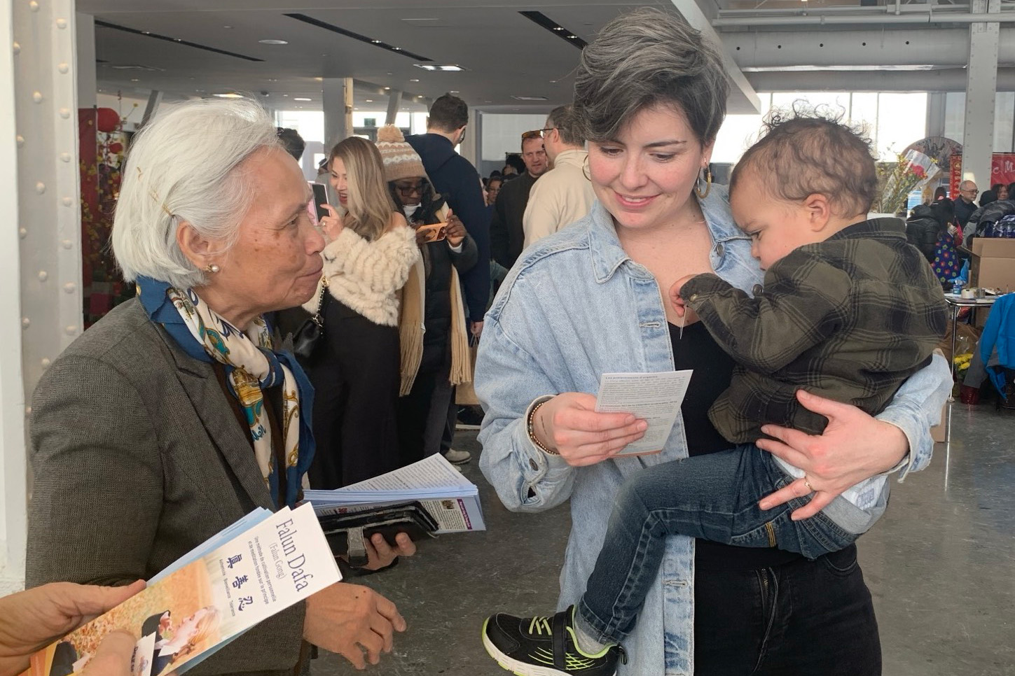 Phuong 女士与丈夫都是活动主委会的成员,他们来到展位上。Phuong 女士表示,她先前就曾听说过法轮大法,但一直没有机会深入了解。在听完法轮功学员的介绍后,Phuong女士对修炼功法表现出兴趣,并在拿到义务教功联络电话后非常高兴,表示会拨打电话加入集体炼功。