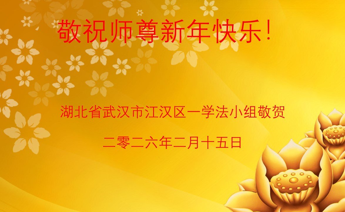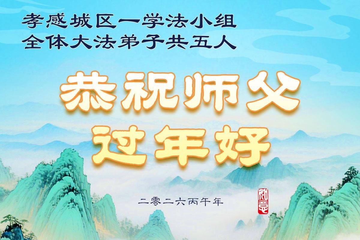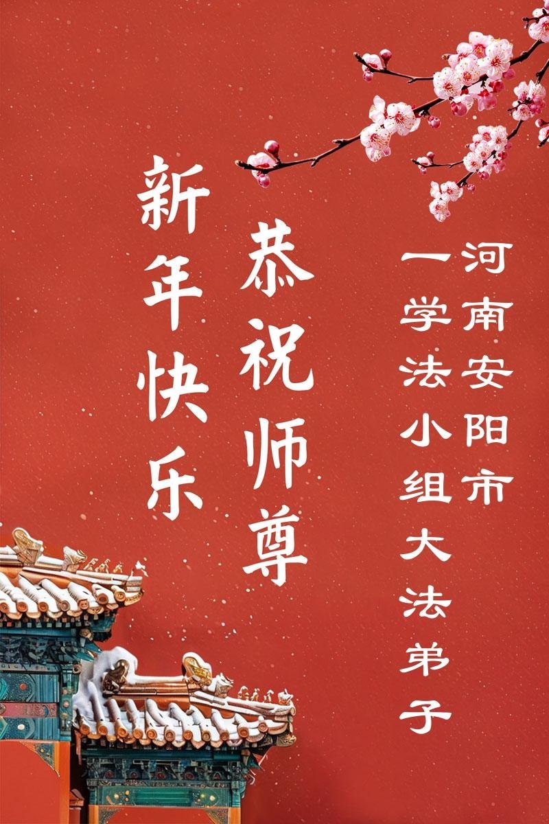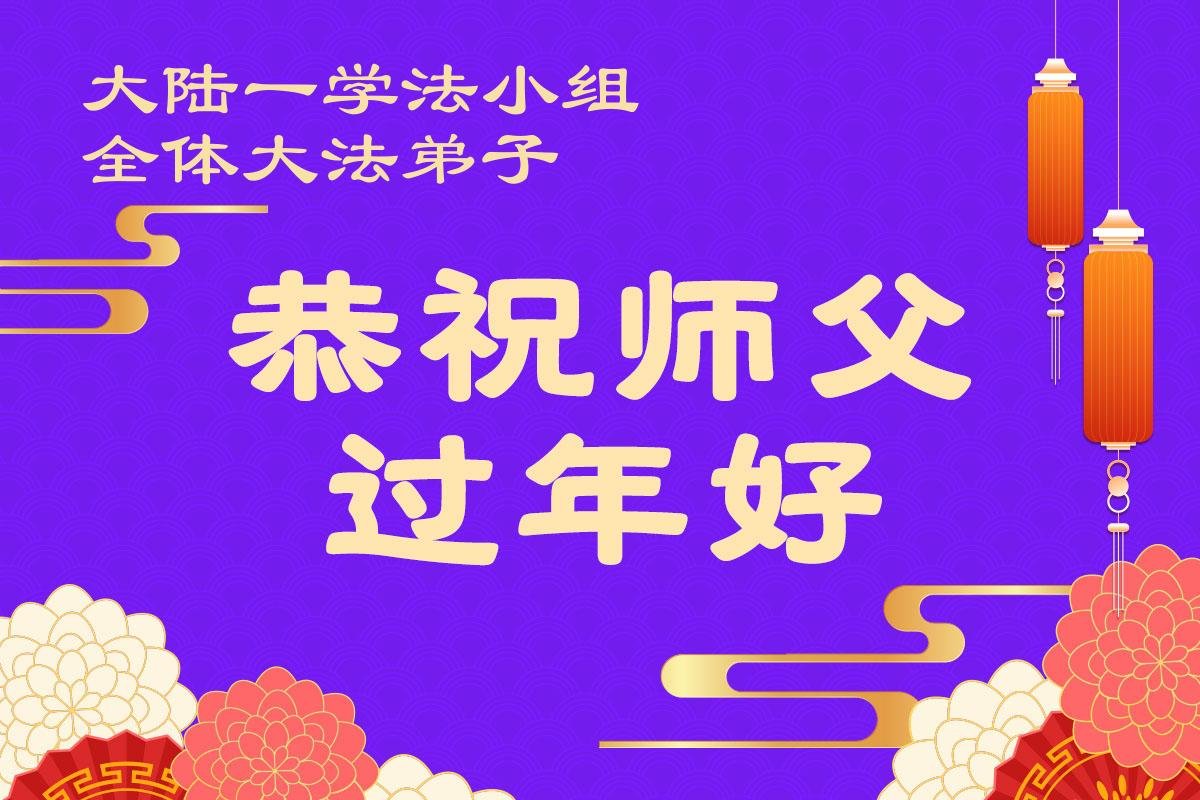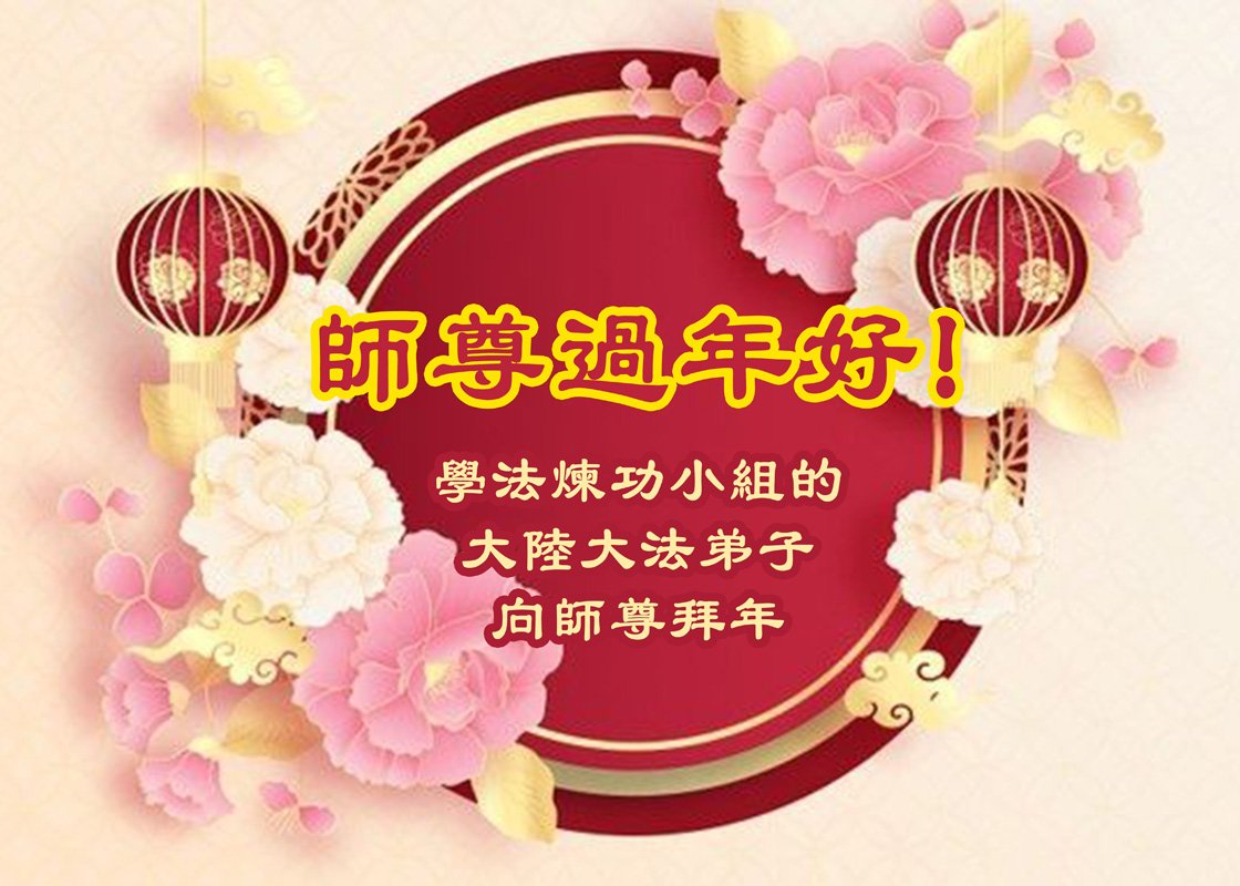 恭祝慈悲伟大的师尊过年好!弟子们成立学法小组时,想到没被迫害之前师尊当年给弟子们留下的炼功场、学法场,那壮观的景象,现在还依然历历在目,大家在一起学法、炼功、家庭和睦、走路生风,整个社会都处于和睦状态……弟子们会多学法、以法为师、共同精進、共同配合,做好三件事,圆满随师还。