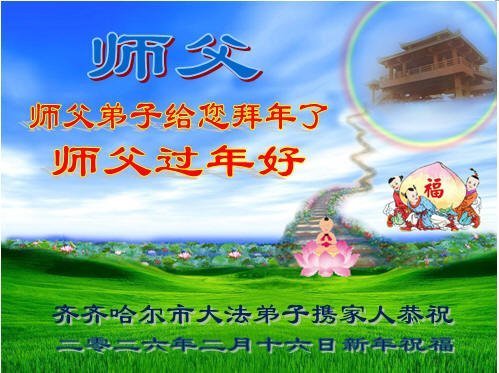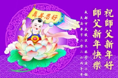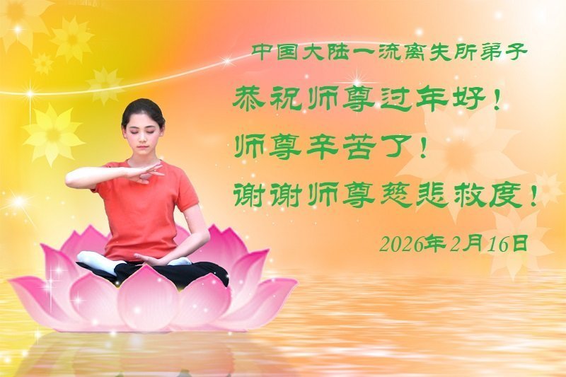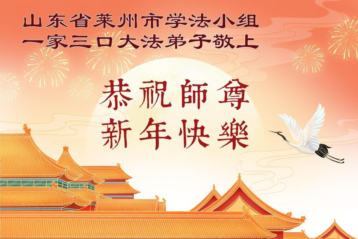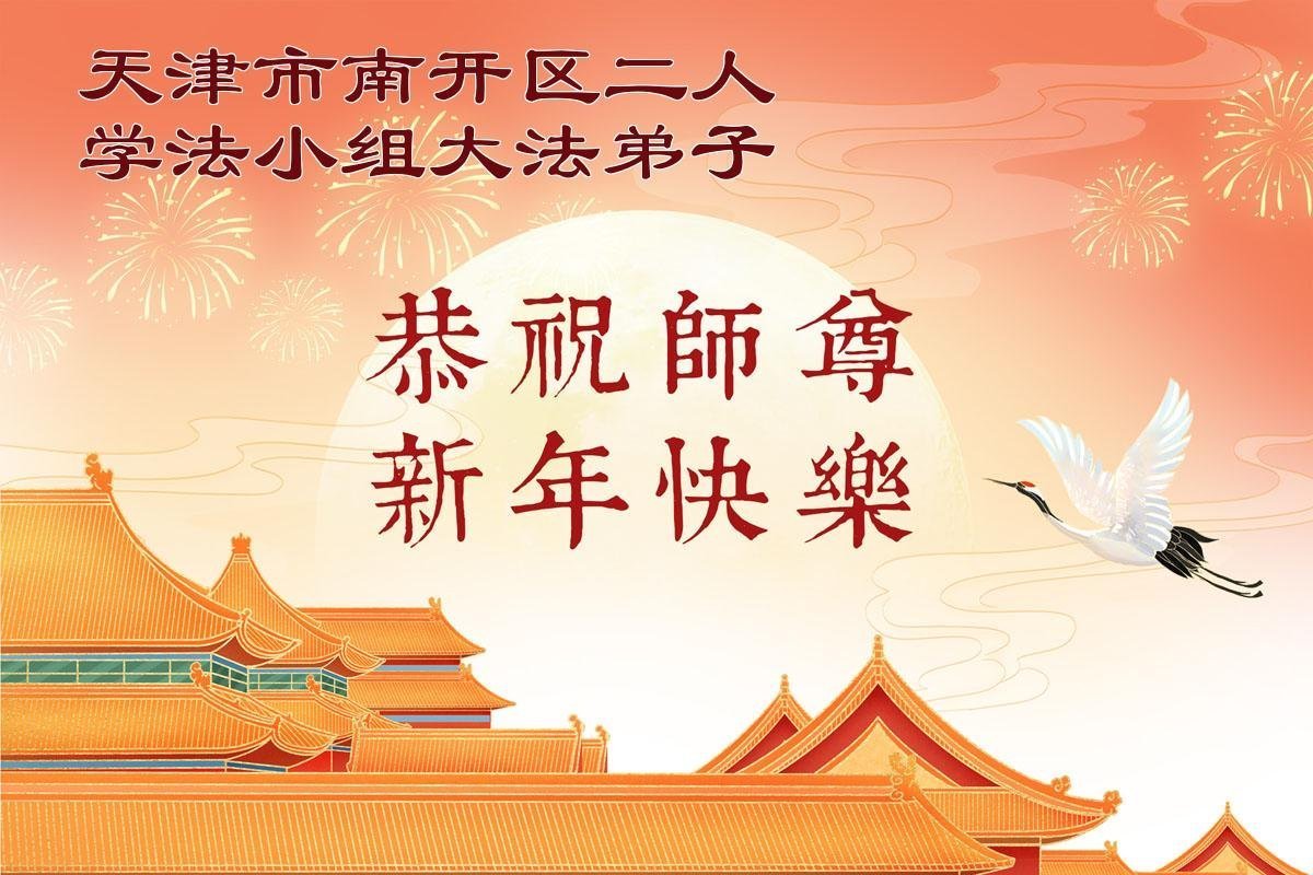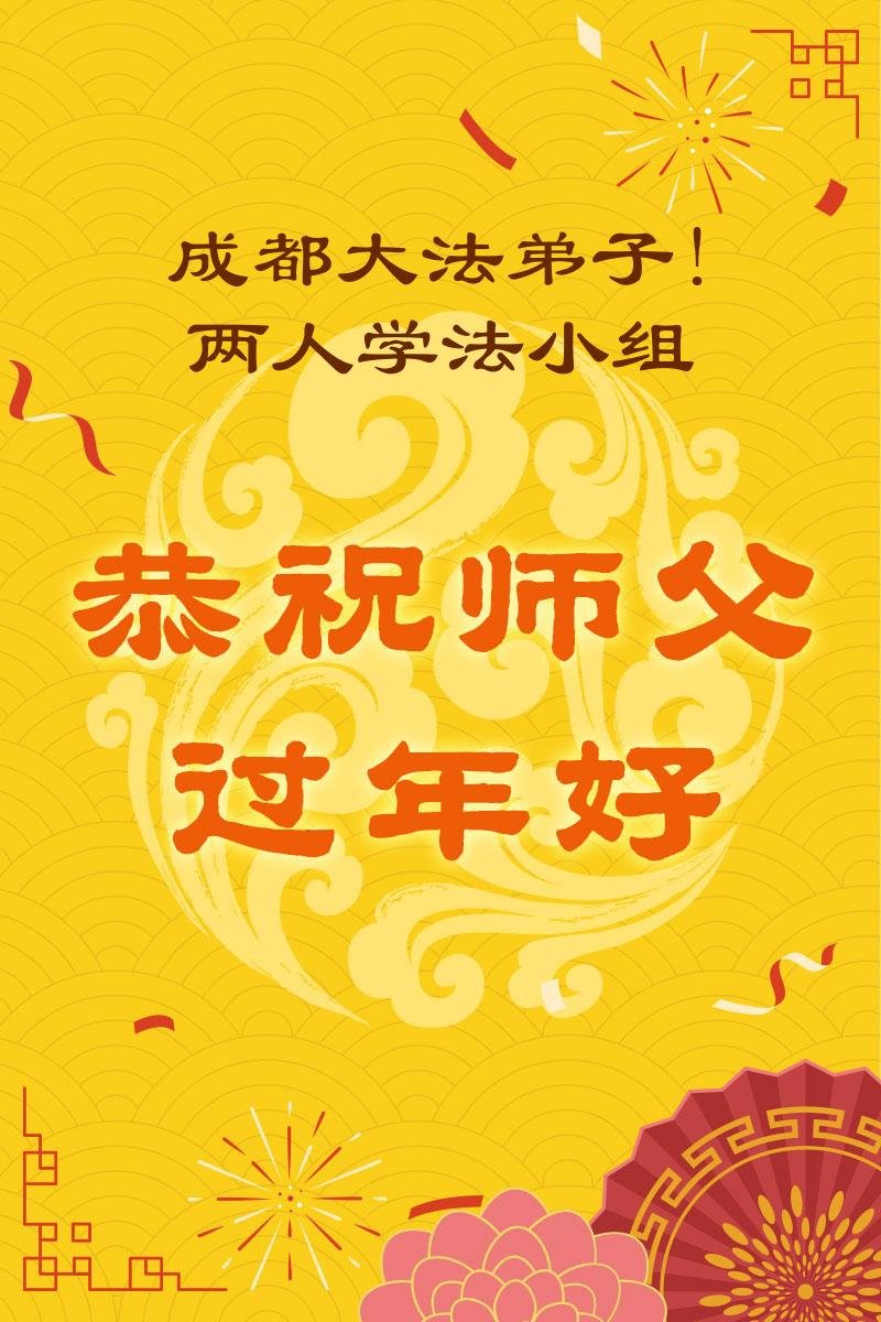 恭祝慈悲伟大的师尊过年好!弟子们成立学法小组时,想到没被迫害之前师尊当年给弟子们留下的炼功场、学法场,那壮观的景象,现在还依然历历在目,大家在一起学法、炼功、家庭和睦、走路生风,整个社会都处于和睦状态……弟子们会多学法、以法为师、共同精進、共同配合,做好三件事,圆满随师还。