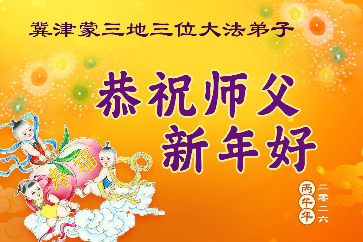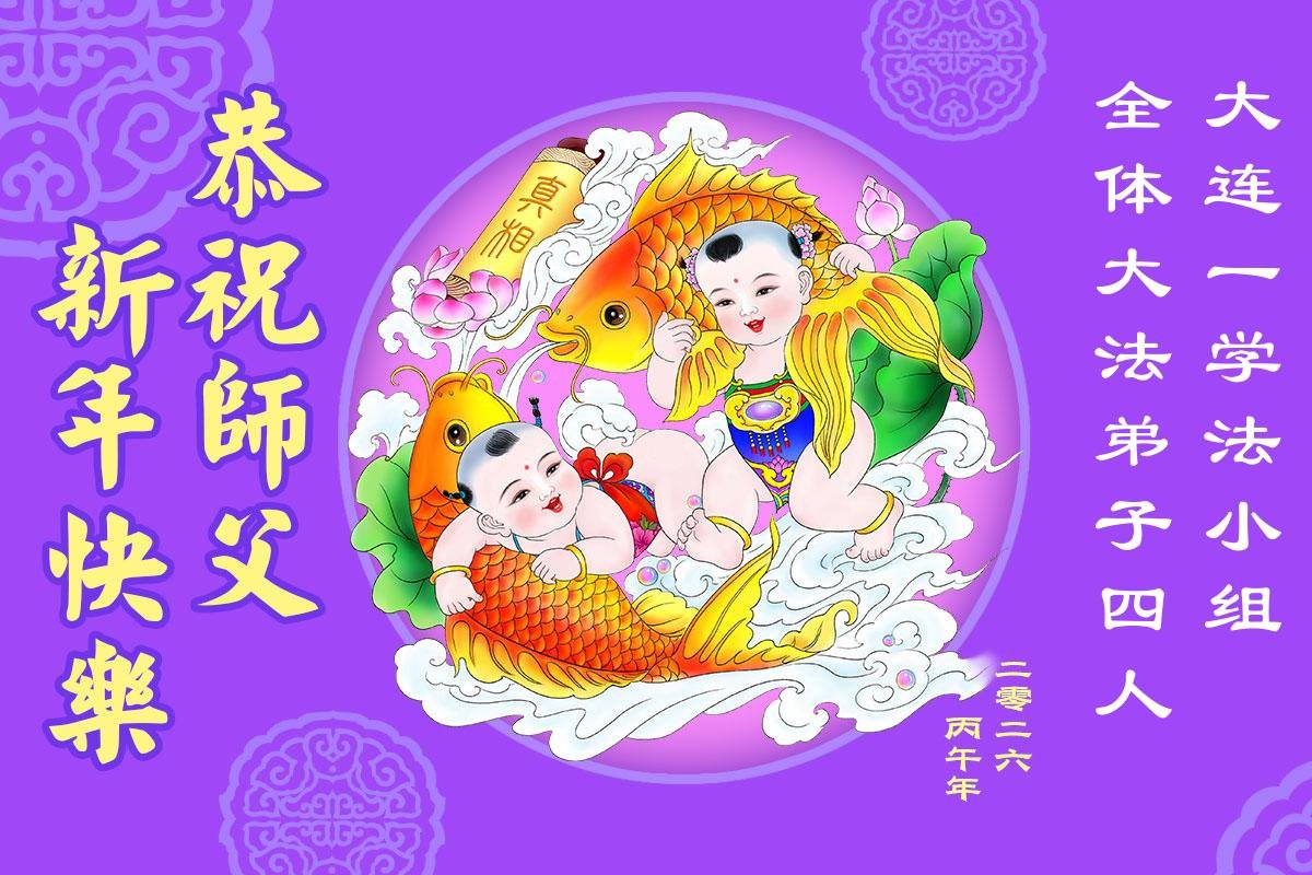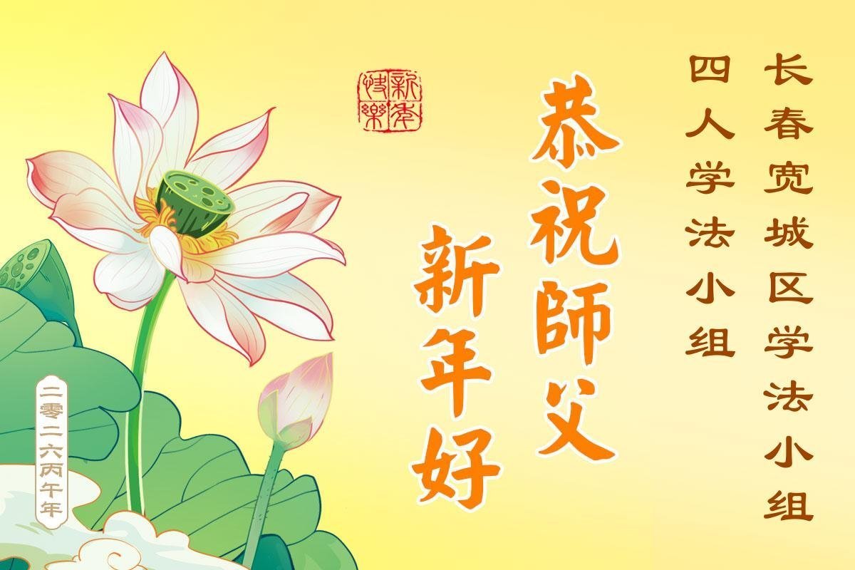 感谢师父对弟子们时时刻刻的看护!为了我们这些在外地的大法弟子不至于落下,安排机缘让我们天南海北的大法弟子能够相识,能在一起学法、修炼。我们都无比的感恩师父给我们这个机会,谢谢师父!弟子们也会把握好这个机会,精進实修,走好师父给安排的路。师父为弟子们的修炼操尽了心,费尽了心血,一步一步的引领着我们走好修炼的路。没有语言能表达弟子对师父的感恩!师父您辛苦了!谢谢师父!新年到来的时刻,我们在外地的学法小组四人给师父拜年了!