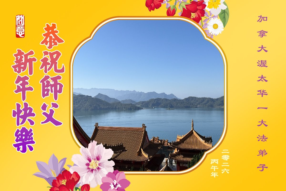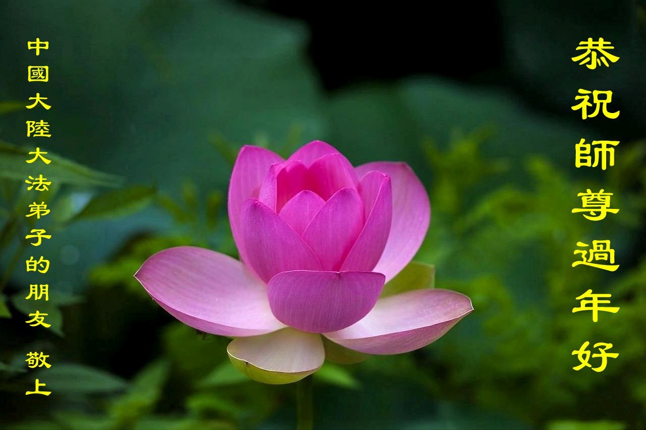 弟子感恩师父慈悲苦度!在新的一年里,我们要更加努力,多学法,学好法,学透法,证悟大法,同化宇宙真善忍特性,时时处处向内找,看到别人有问题就是自己有问题,在法上认识法,在世俗的大洪流中不随波逐流,在神路上助师正法,圆满随师还。