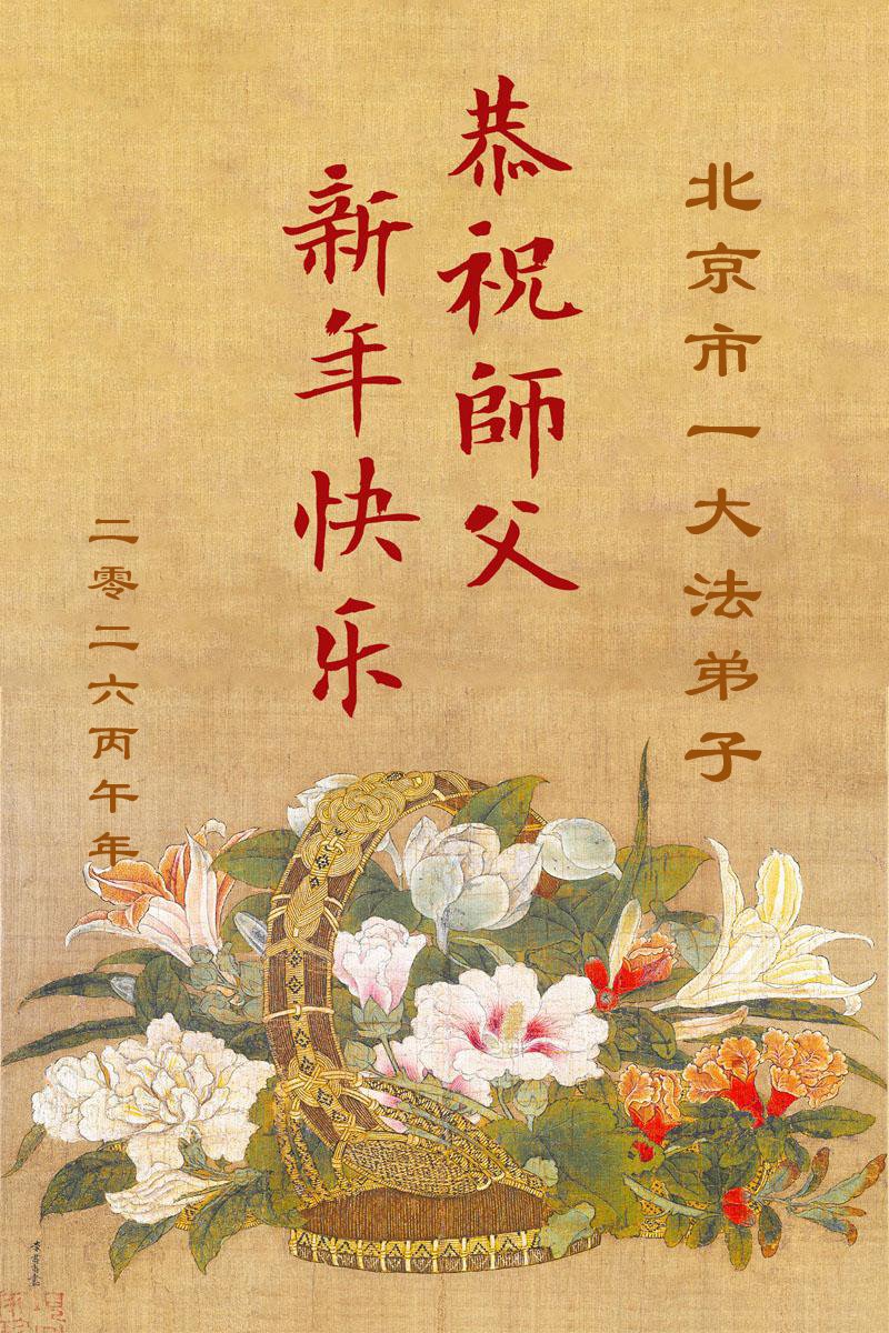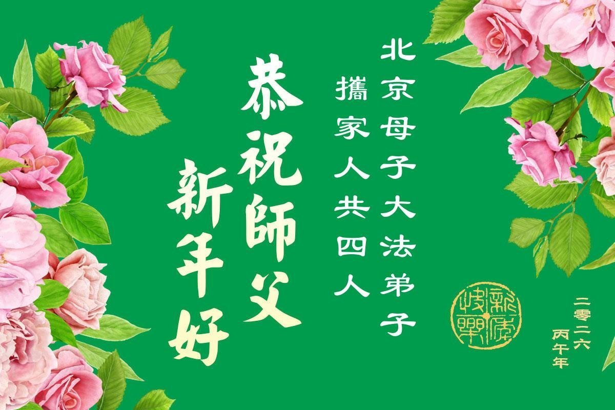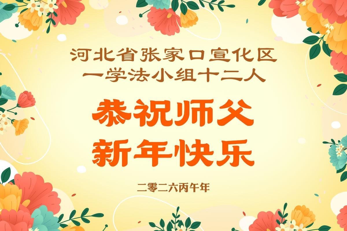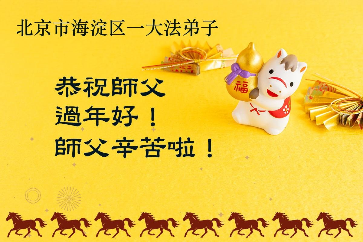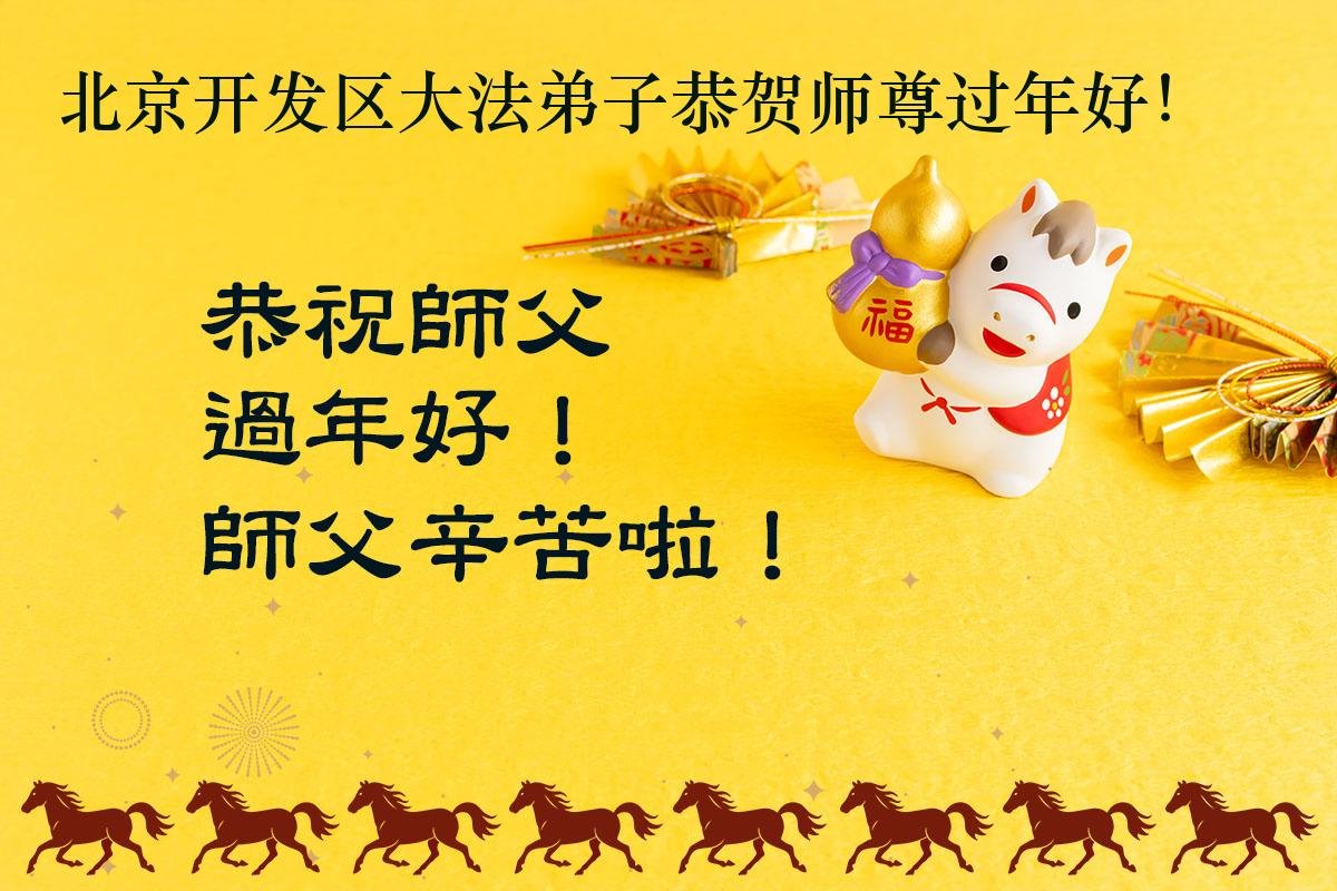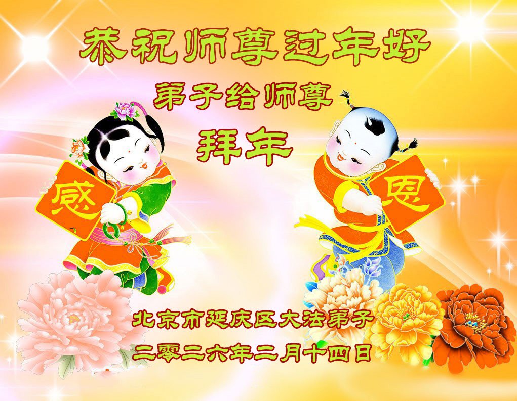 在新的一年到来之际,我们北京学法小组全体大法弟子向慈悲伟大的师尊拜年!师父您好!您辛苦了!我们有信心和决心在新的一年遵照师尊的谆谆教导,修去人心,做好三件事,学法修心向内找,讲真相,做个名副其实的大法弟子,跟师父回家。