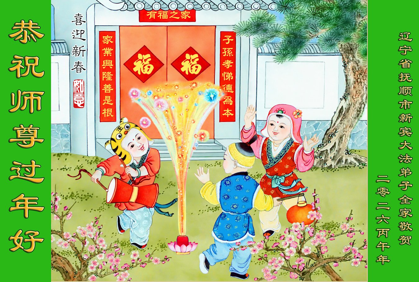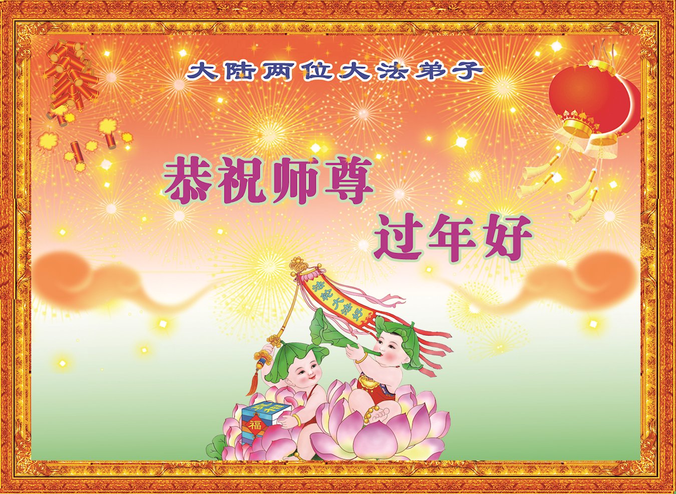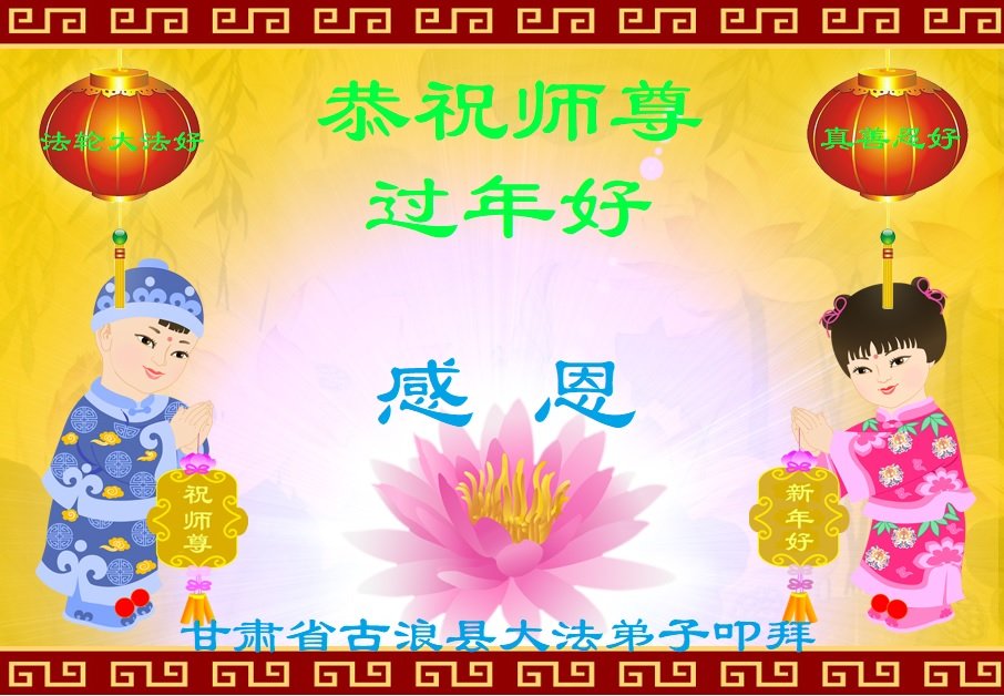 今天是腊月初一,快过大年了,我们姊妹俩在此给尊敬的师父拜年!感恩师父的慈悲普度,恭祝师父新年好!在新的一年里,我们会听师父的话,抓紧时间修好自己多救人。让更多的众生明白:法轮大法好,真善忍好!