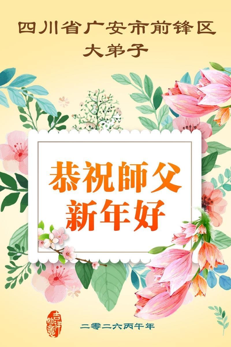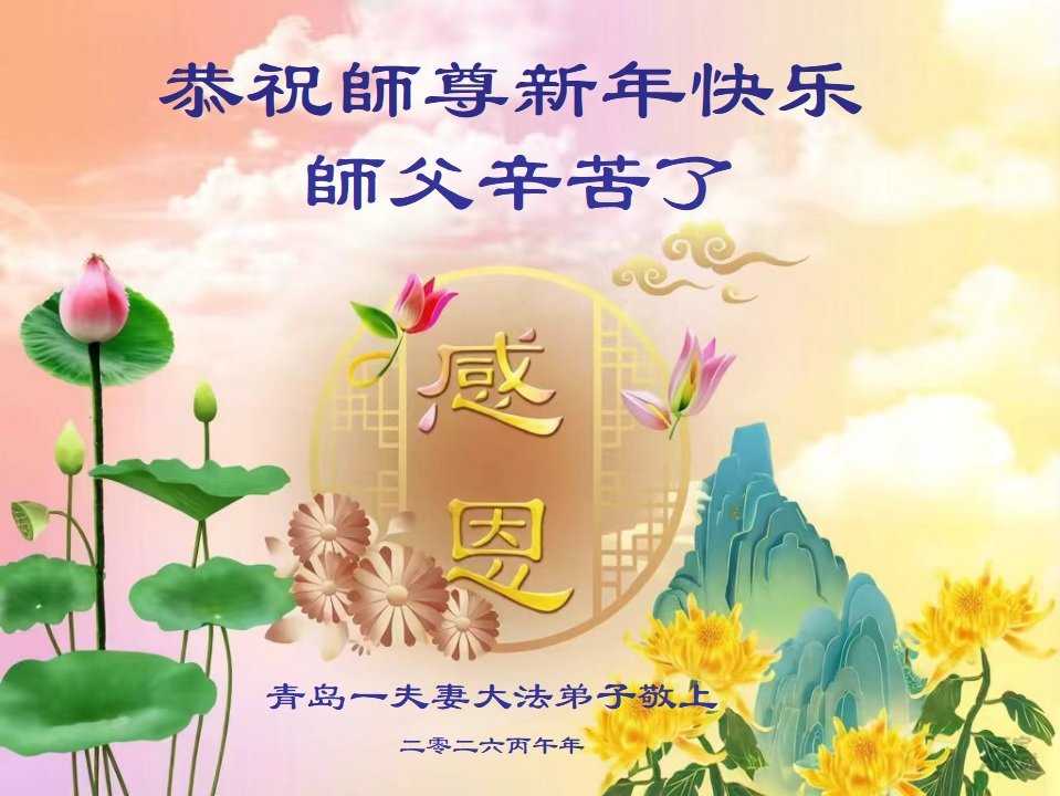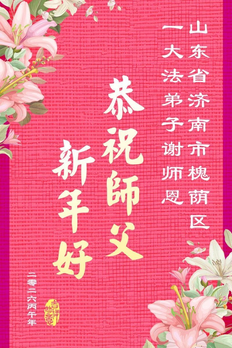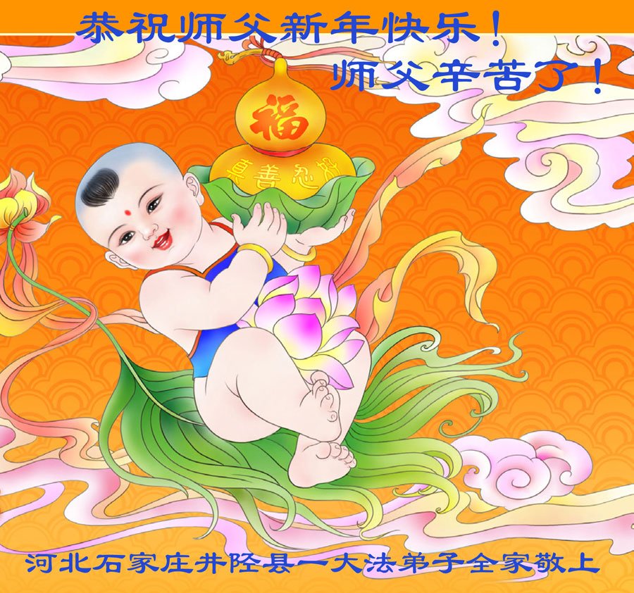 尊敬的师父,新年好!您辛苦了!多年来,您为弟子与众生付出承受的太多太多了,弟子无限感恩与珍惜!得救的众生无不欢欣鼓舞,感恩师父的慈悲救度!弟子会更加努力做好三件事,走好今后的路。愿师父多一份欣慰,少一份操劳。