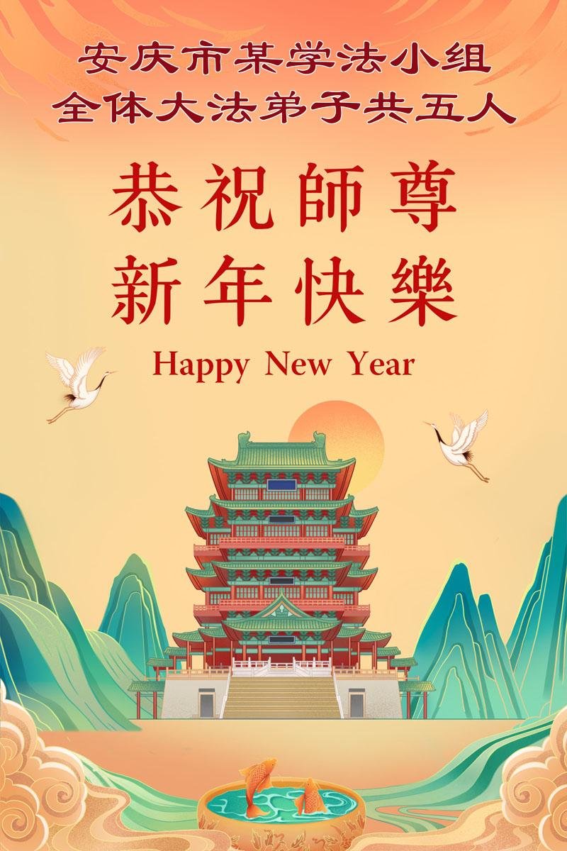 尊敬伟大的师尊:新的一年来到了,祝师尊新年快乐!在新的一年里,我们小组同修抓紧时间做好三件事。修好一思一念,一言一行,走好师尊安排的路。持之以恒,永不懈怠。坚修到底,多救人,让师尊多一些欣慰,少一些操劳!