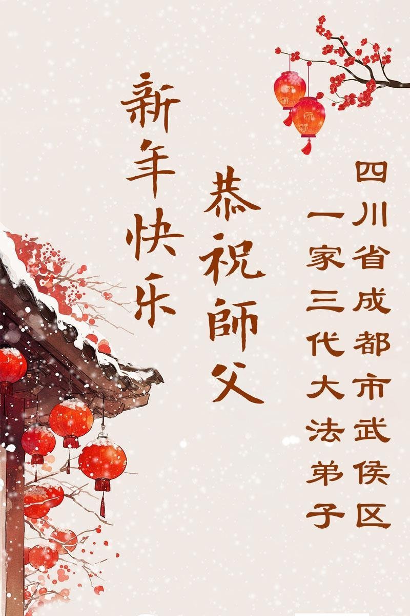 恭祝师父过年快乐!感恩师父慈悲苦度,谢谢师父!师父您辛苦了!能做您的弟子是我们的幸运,荣耀,神圣。我们珍惜这万古机缘。走师父安排的路。让我们与更多的众生迎接那仙乐响起,金莲盛开大法春天的到来。随师回家。