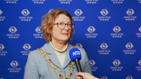 一月七日下午,牛津市(Oxford)市长路易丝·阿普顿(Louise Upton)博士在牛津新剧院(New Theatre)观看了神韵在当地的首场演出。作为历史文化名城的市长,她表示,神韵不仅带来愉悦而高雅的观演体验,更传递出发人深省的价值理念,让人回味无穷。