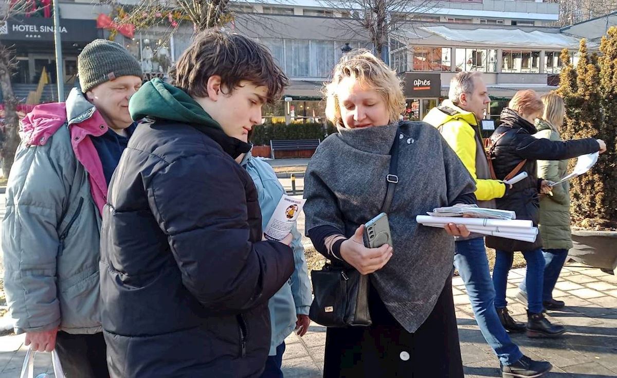 【明慧网二零二六年三月十二日】二零二六年二月二十七日至三月一日,罗马尼亚法轮大法学员聚集在锡奈亚(Sinaia)分享修炼体会,同时设立展位,弘扬法轮大法,唤起人们关注信仰真、善、忍的人群正在中国遭受的残酷迫害。活动得到民众的支持,人们希望这样的道德价值观在社会中得以弘扬,并支持反迫害。