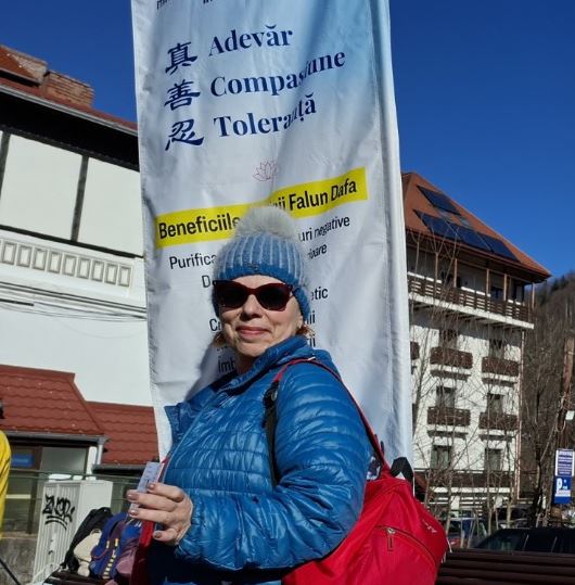 来自锡奈亚的退休人士米雷拉·帕沃洛尤(Mirela Păvăloiu)说:“我很高兴停下来看你们炼功。我很喜欢,也真的想学法轮大法。”